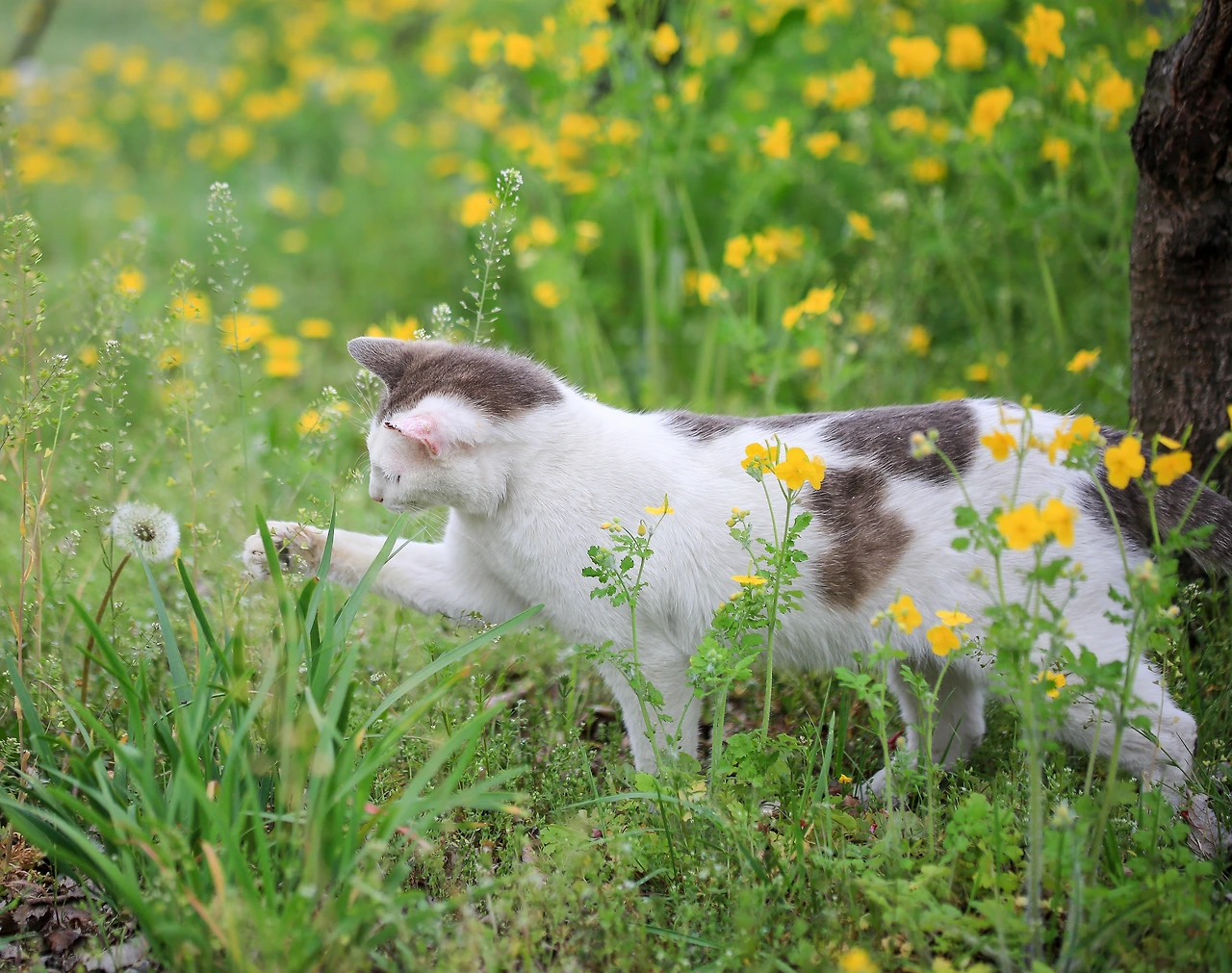 여기저기 핀 민들레 홀씨가 신기한듯