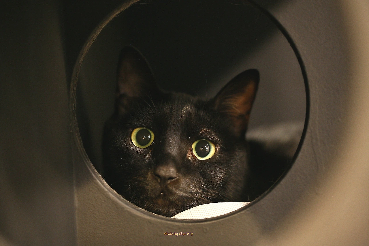 고양이 카페에서 만난 검은고양이 사람도 렌즈도 무서워했다