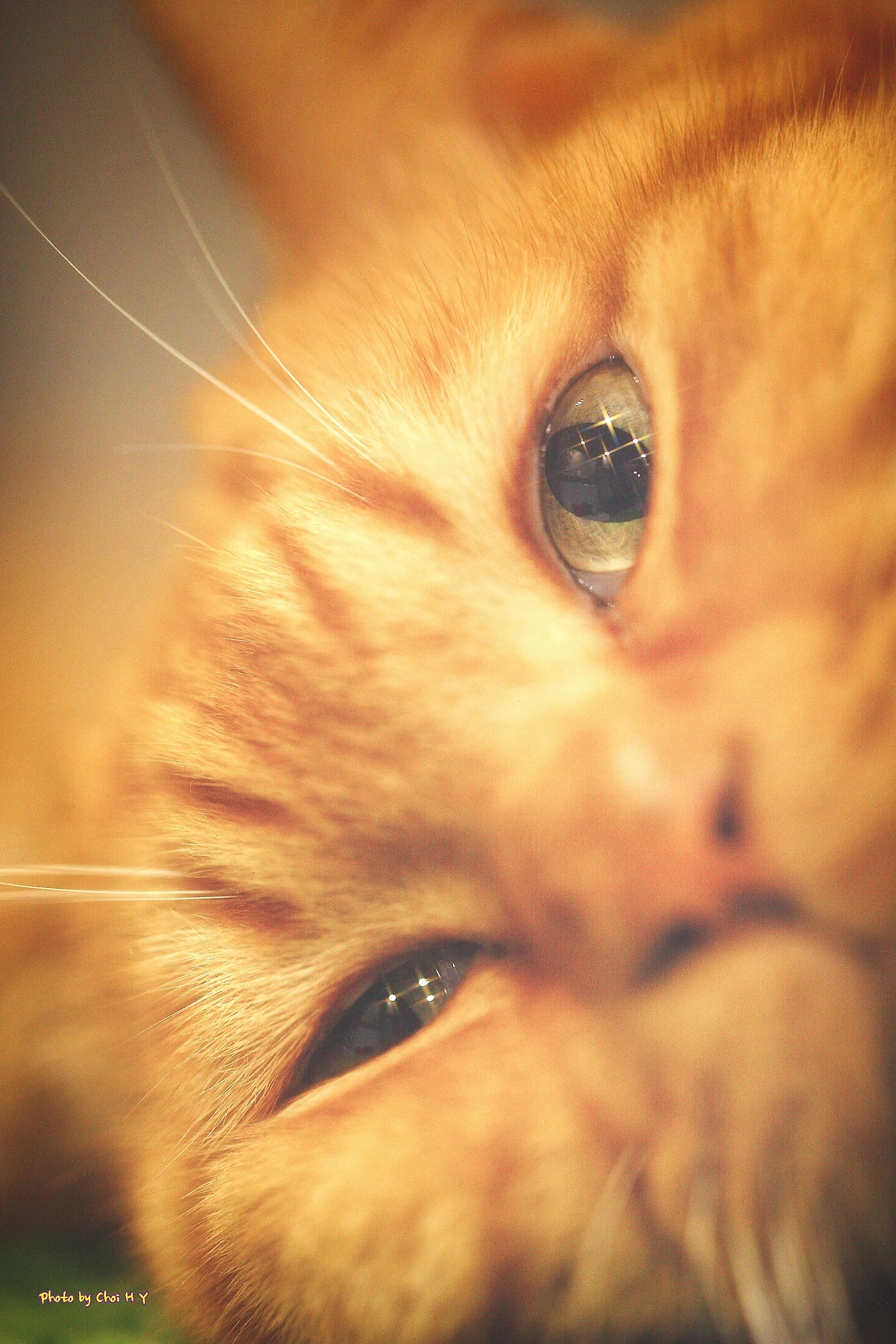 고양이 카페에 있던 치즈냥이... 렌즈를 들이대도 전혀 무서워하지 않는다~