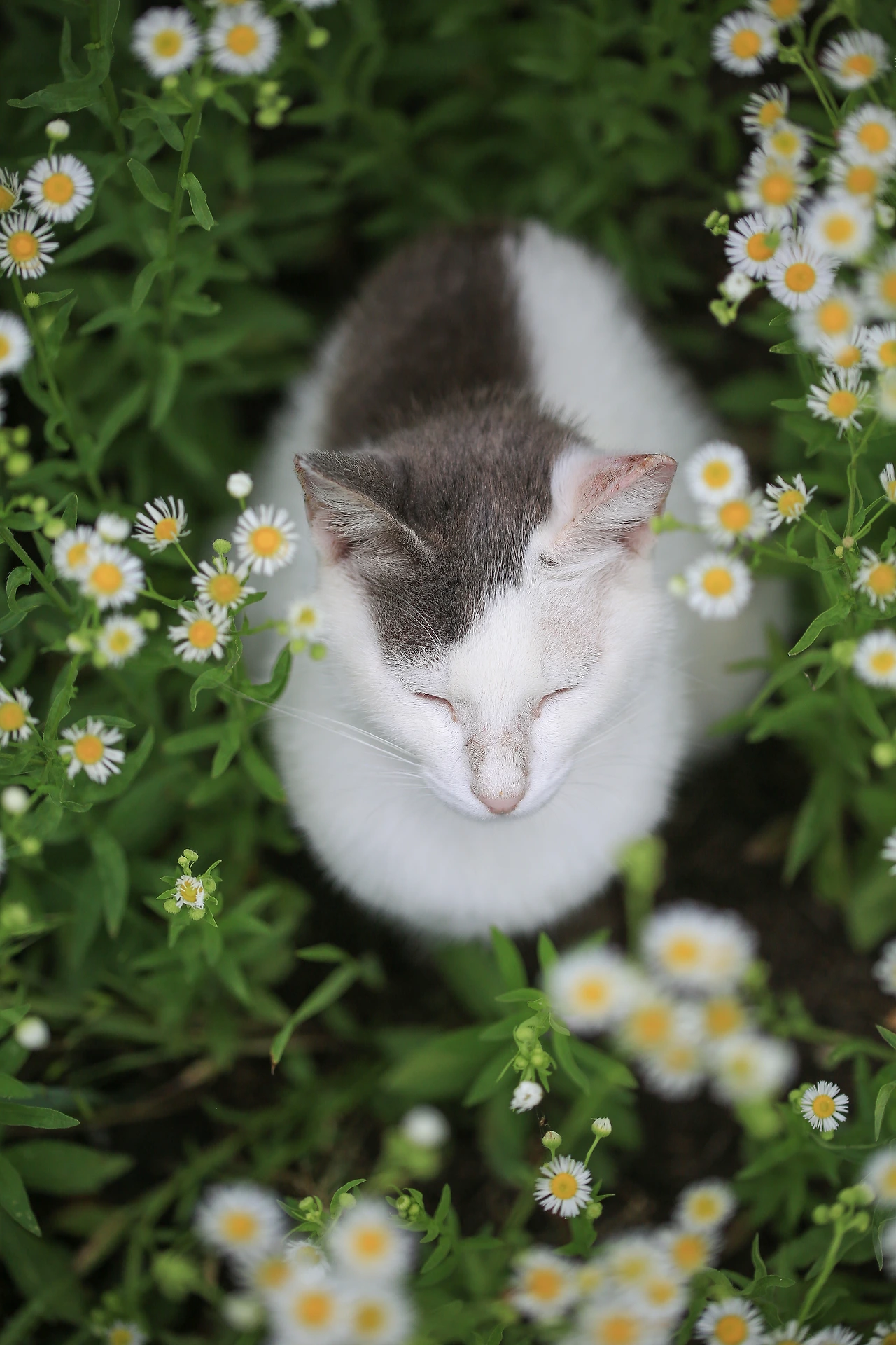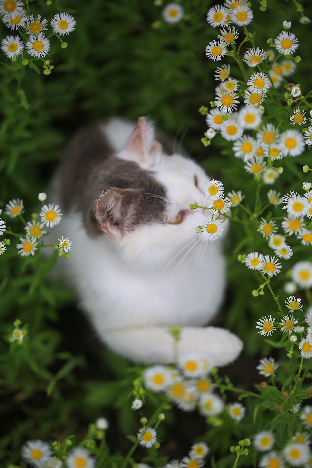 꽃 무더기를 찍고 있는 사이로