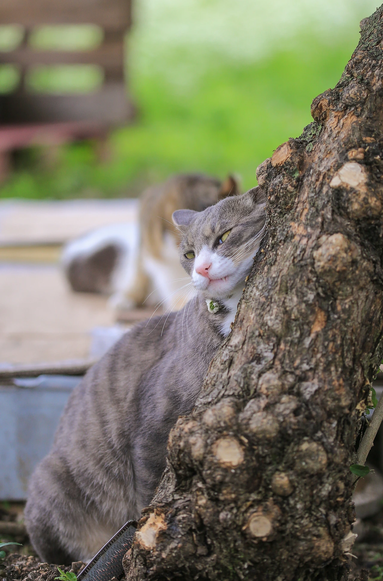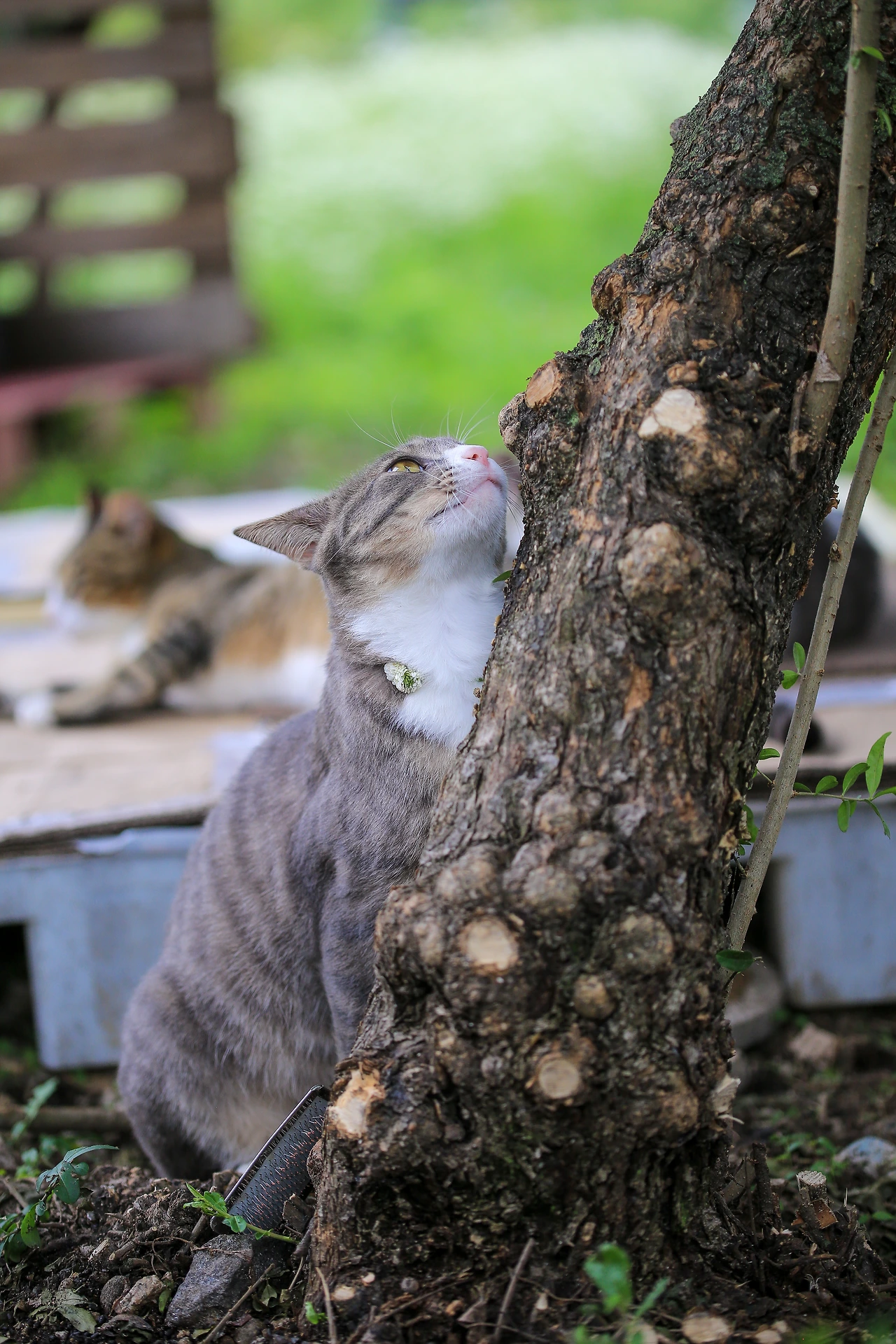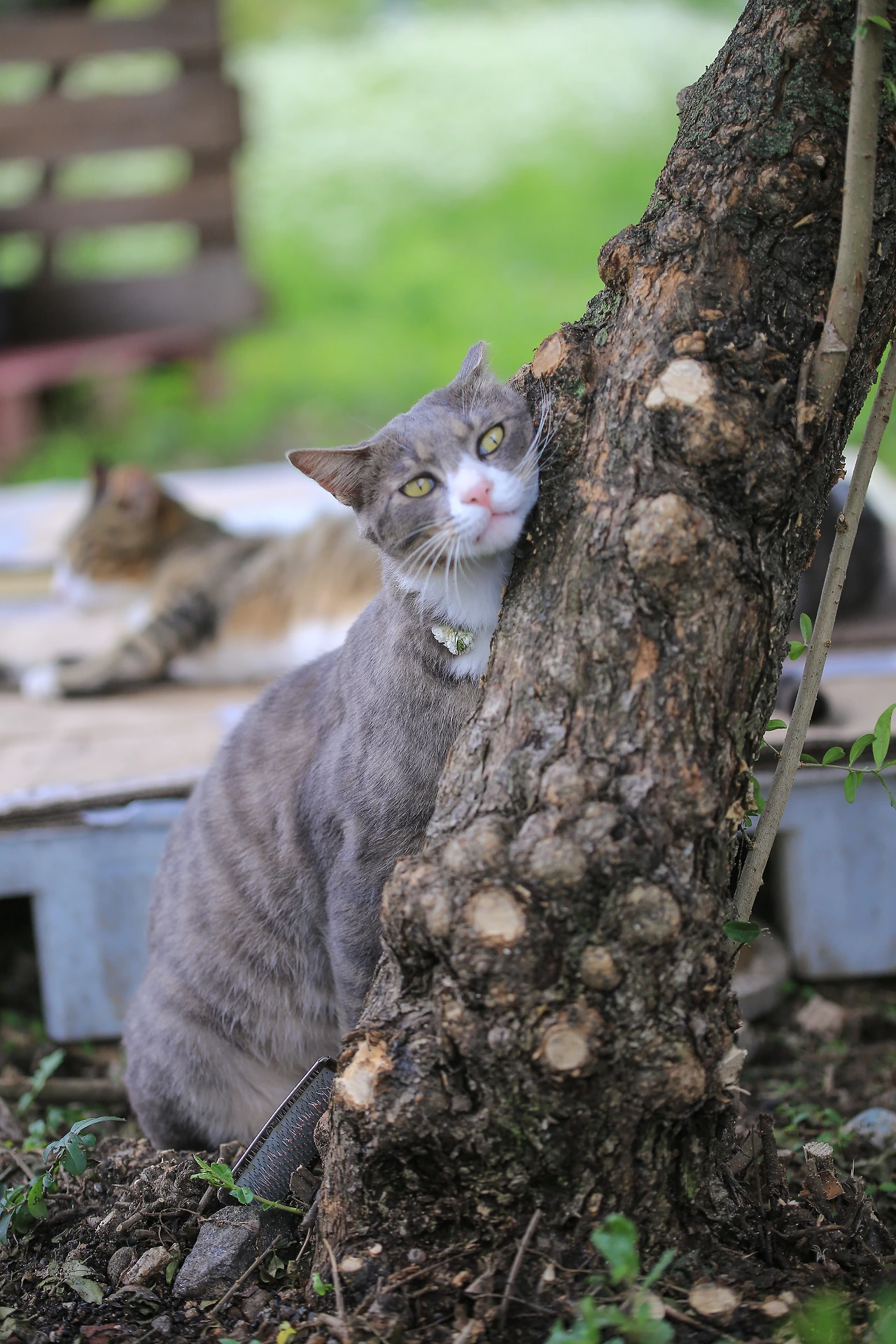 나무에 캣닢 조금 뿌려줬을 뿐인데