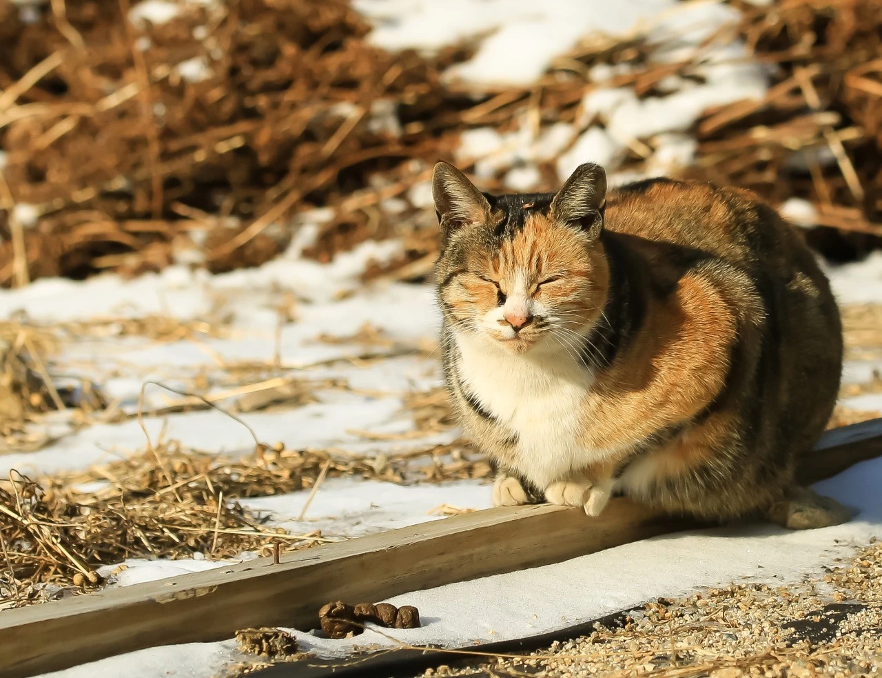 눈이 쌓인 틈으로 햇살이 내리고