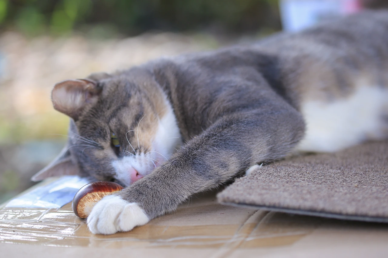 움직일까봐 귀는 쫑긋하고 툭툭 건디려보는 노라
