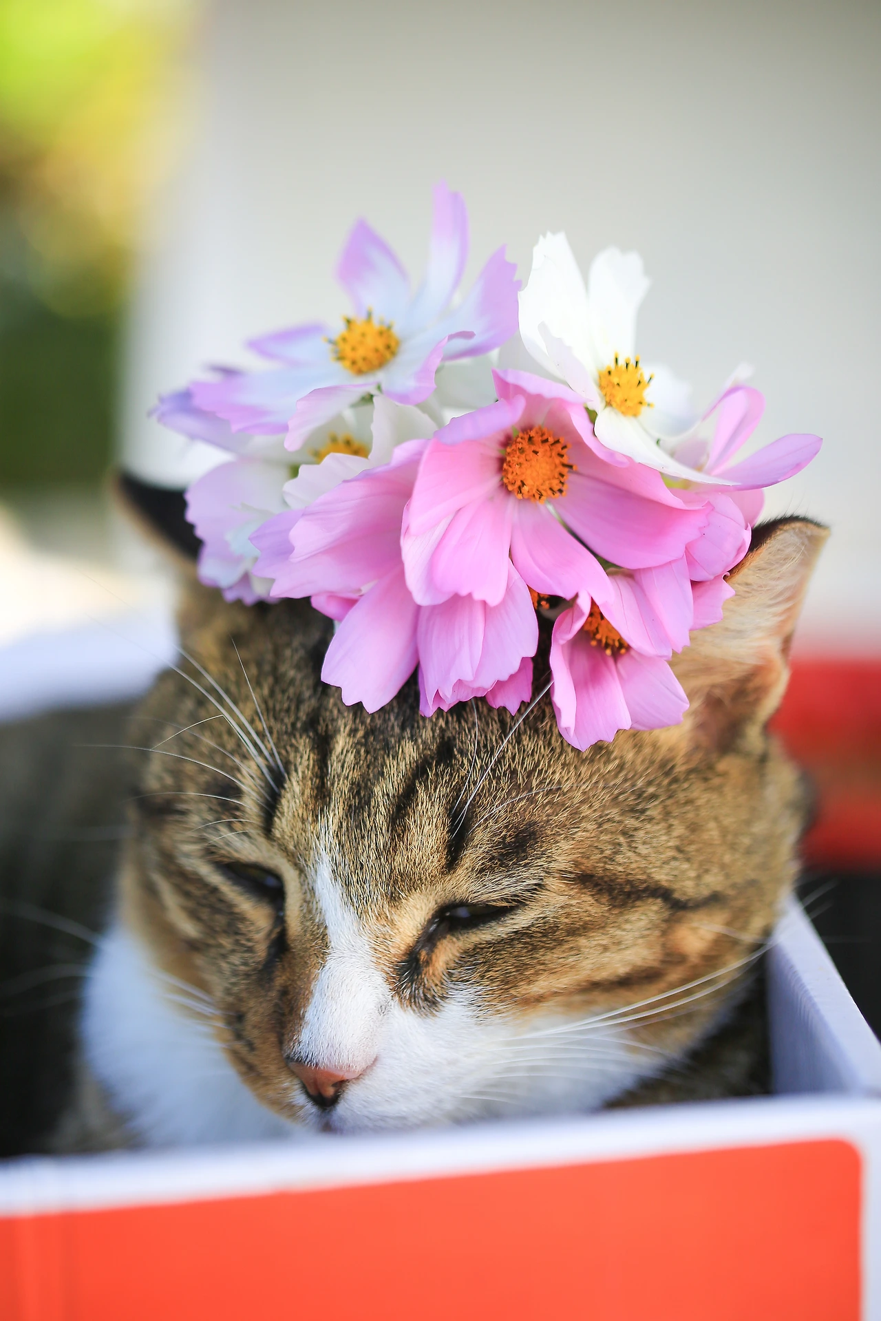일어나니 집사가 오늘도 꽃을 한아름 가져왔다옹