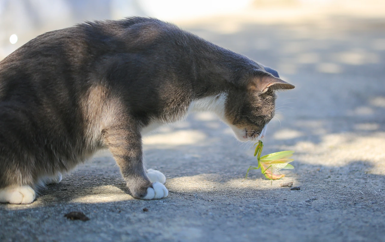 용감한 노라 공격에 당황한 사마귀~