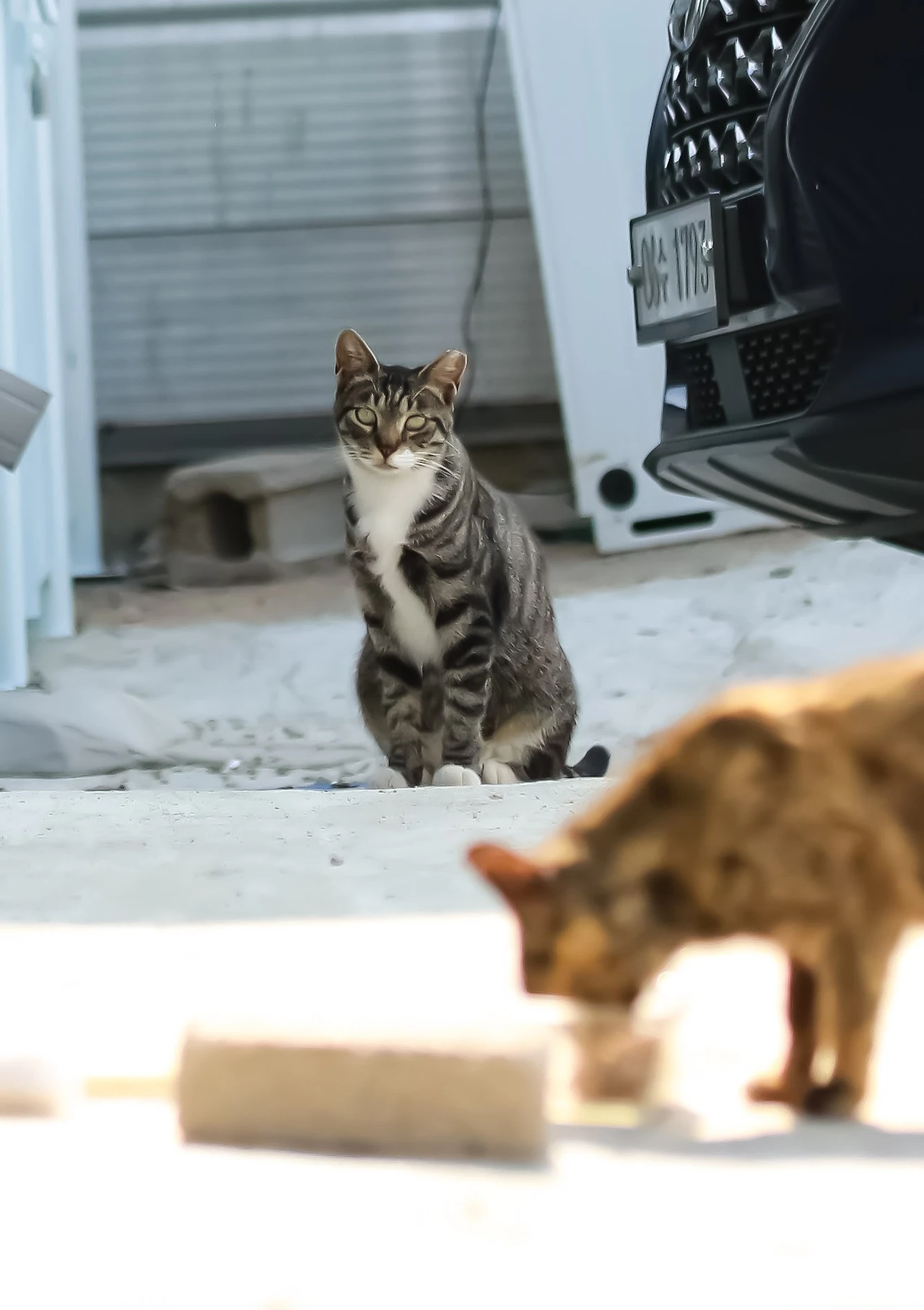뒤에 멀찍이 서있는 냥이가 "건"이