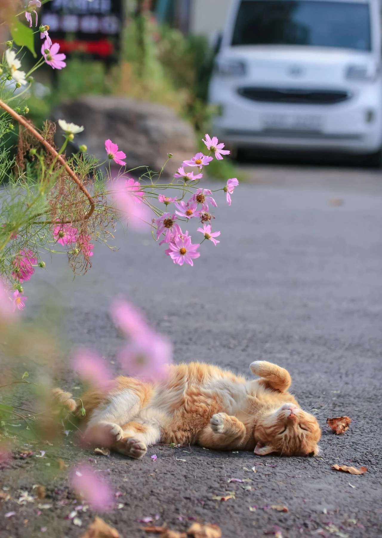 나 코스모스 찍을 건데 냐옹이도 같이 찍을래?