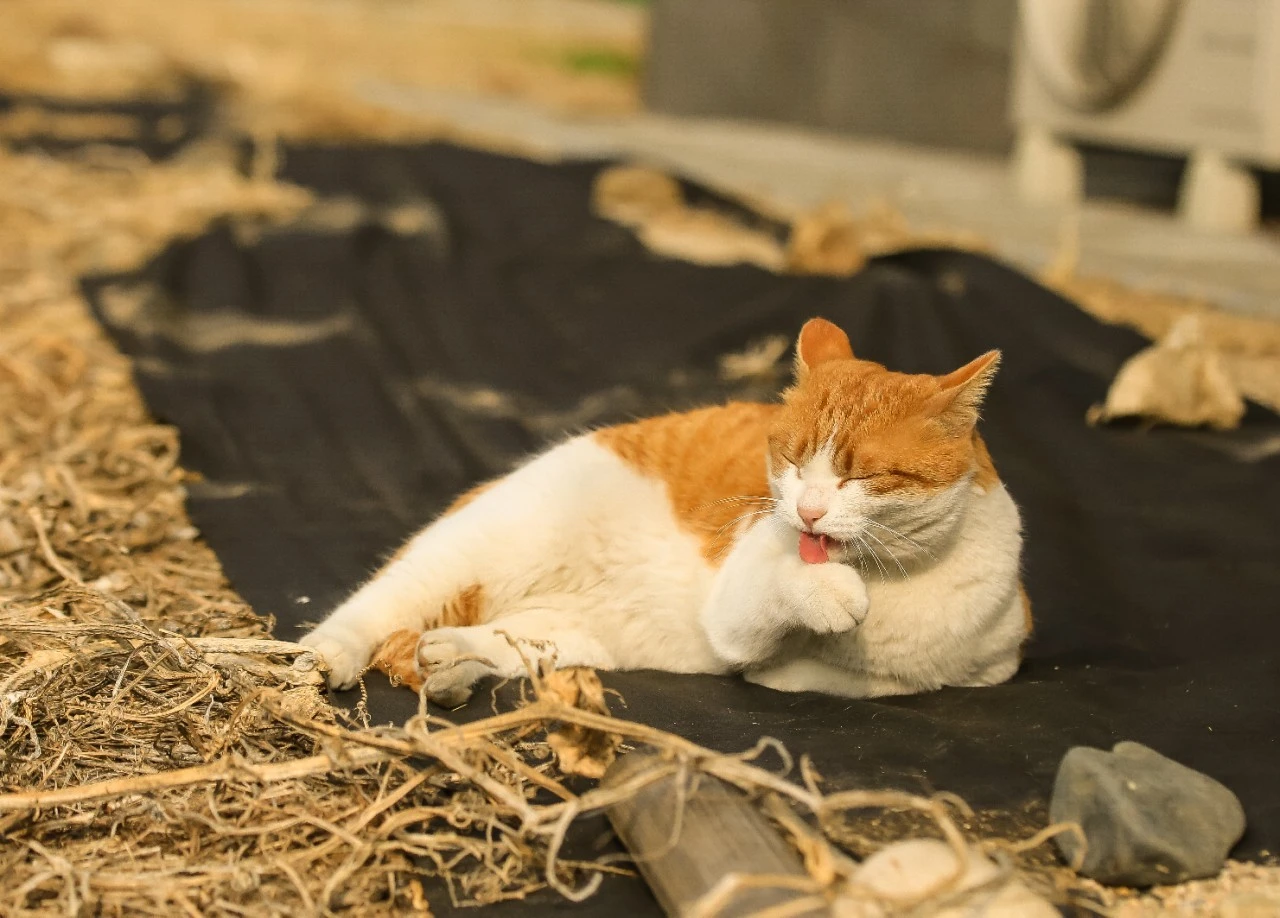 겨울이 계속돼서 노란 들판에 노란 냥이가