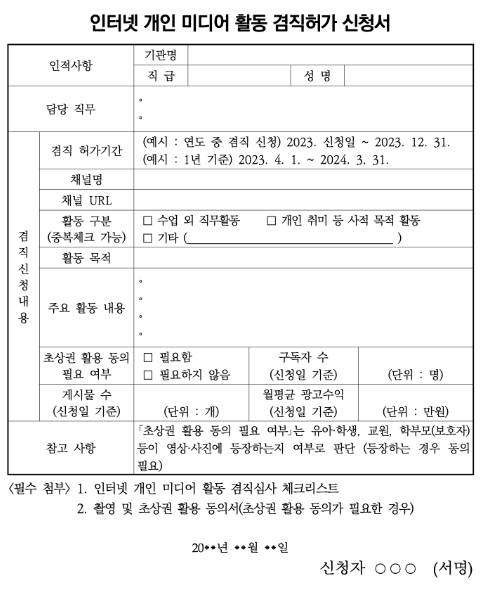 네이버 애드포스트 신청 및 승인 완료와 동시에 때마침 '겸직허가 신청' 관련 공문이 왔길래, 얼른 작성해서 교감선생님께 허락을 받으러 갔다.