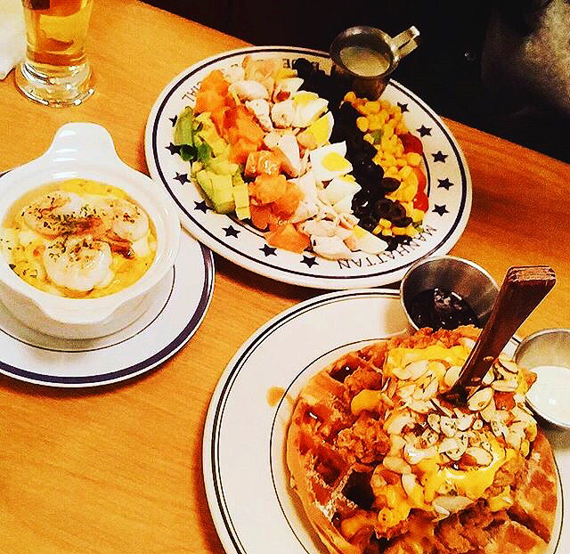 이 곳의 대표 메뉴는 치킨와플임이 분명하지만, (양심의 가책을 덜기 위해 하나쯤 시켜야 하는) 콥샐러드와 (양심의 가책 따위 내던지게 해주는) 맥앤치즈도 매우 추천할 만하다. 콥샐러드는 요즘 여기저기에서 보이는 메뉴라 딱히 특별할 것은 없지만 온통 탄수화물 단백질 지방 일색인 메뉴가 약간은 부담스럽다면 입가심을 위해 시켜볼 메뉴라고 셍각한다. 그러나 특유의 드레싱 덕에 그닥 칼로리가 낮거나 상큼하게 느껴지지는 않는다는 점을 유의할 것. 차라리 눅진눅진의 최고봉인 맥앤치즈로 하루 칼로리의 화룡점정을 찍는 편이 오히려 더 행복할 지도 모른다. 맥앤치즈는 너무 짜지 않아서 좋았고, 치즈가 막 진득하지는 않지만 그래도 꽤 훌륭한 맥앤치즈였다고 기억한다. 게다가 사이즈도 작기 때문에 치킨와플만 시키기 아쉬울 때 한번쯤 도전해볼 만하다.