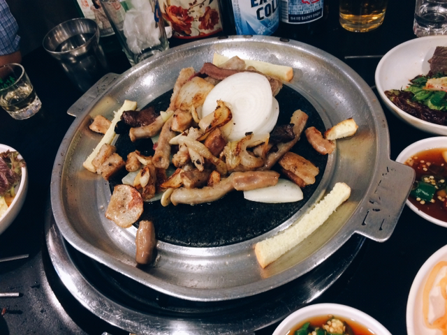 tvn의 대표 프로그램 중 하나인 수요미식회는 든든한 맛 평가단 군단을 업고 굉장한 신뢰도를 가진 프로그램으로 자리잡은 바 있다. 수요미식회에서 전파를 탔다 하면 검색어 1위는 물론이고, 그날 이후 그 집에 가기 어려울 정도로 사람들이 가게 앞에 장사진을 치는 일은 예사다. 한동안은 수요미식회에 나왔다고 하면 웬만한 사람들이 다 믿고 먹을 수 있을 정도였으니까. 그러나 회차를 거듭할수록, 수요미식회조차 등장하는 모든 집들이 다 맛있다고 단정지을 수 없겠다는 생각을 점차 하게 되었다. (이름을 직접적으로 언급하기 어려운 모 삼겹살 집이 가장 대표적이지만) 바베큐 류의 음식점들에 대해서는 특히 더더욱. 그래서 이 집, 삼성양곱창 역시 나의 의심과 불신의 눈초리를 피해갈 수 없는 집이었다. 결론부터 말하자면? 아직 수요미식회 안 죽었네, 정도.