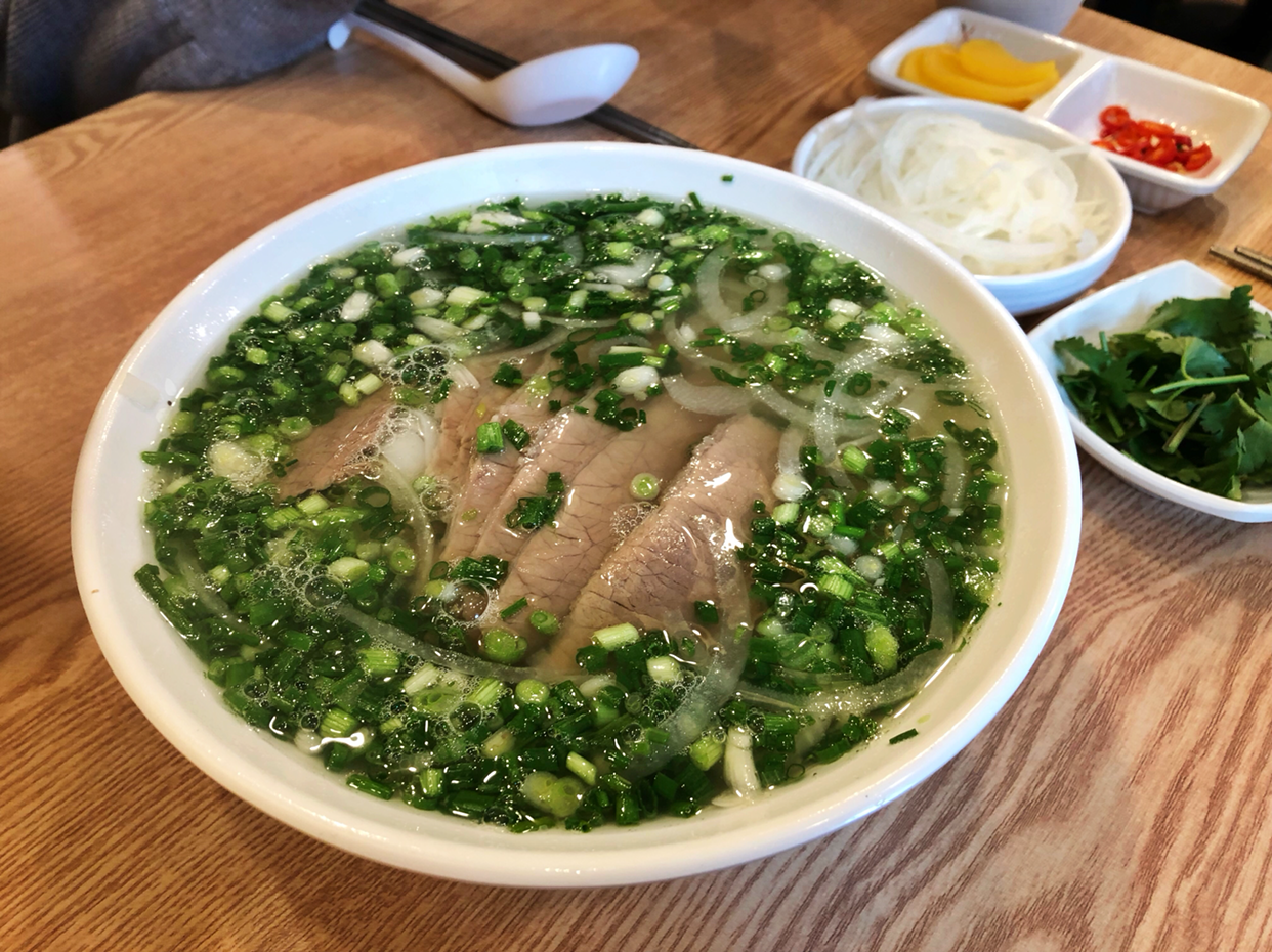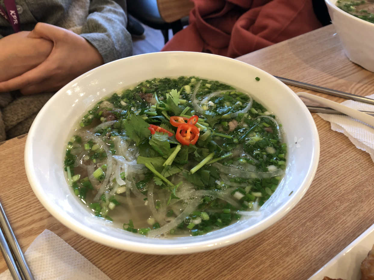 위의 음식들도 꽤 맛있지만, 이 집의 하이라이트는 역시 쌀국수다. 뜨끈한 국물에 파를 엄청 썰어 넣은 게 우리가 평소에 알고 있는 숙주가 올라간 쌀국수와는 많이 다르다. 오히려 숙주는 찾아볼 수가 없다. 대신 꽤 푸짐한 고기와 고수를 올려 한입 먹으면 천상의 맛이 눈 앞에 펼쳐진다.