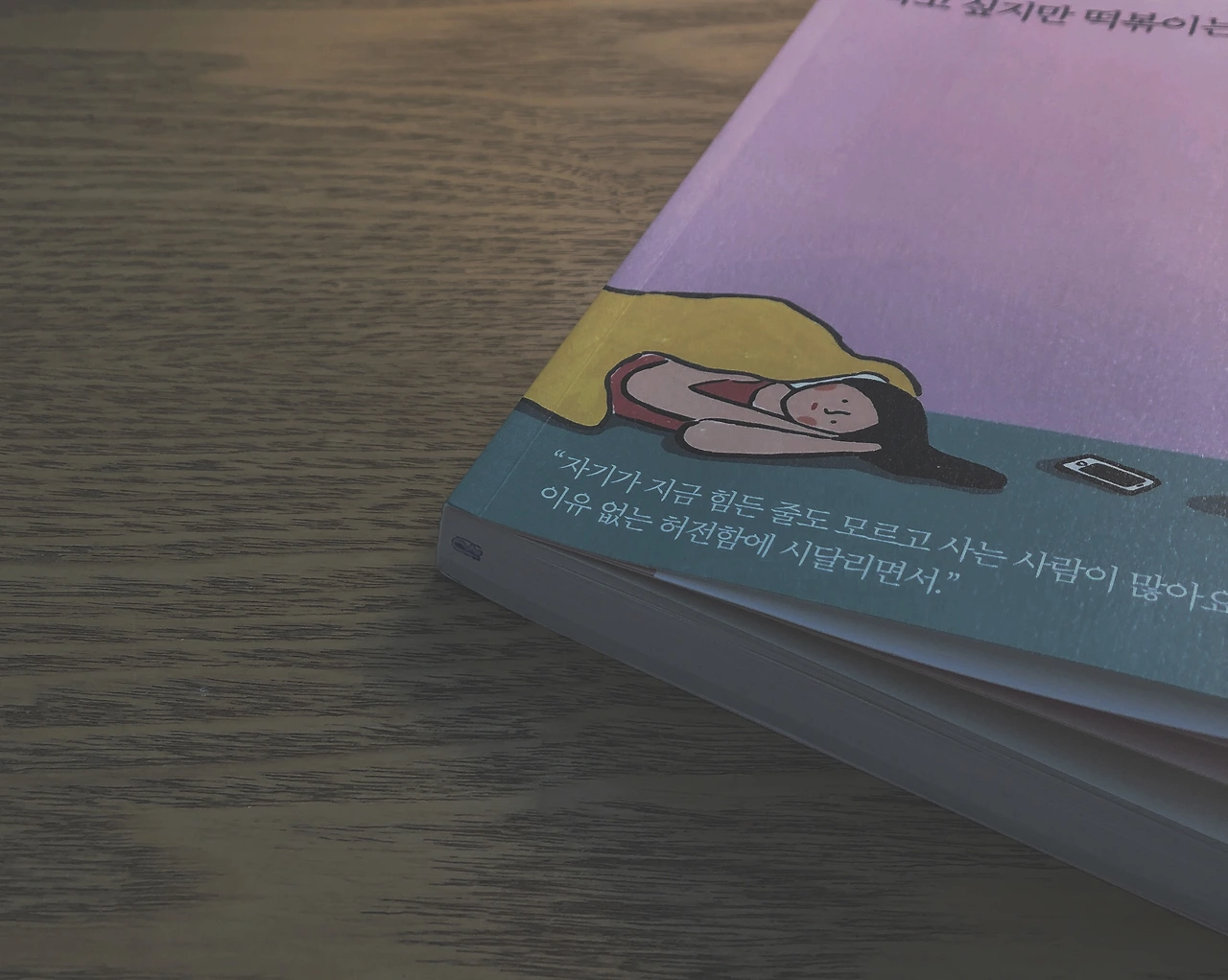 나처럼 힘들어하는 사람이 있다면, 그리고 그 상황에서 벗어날 수 없어 스스로를 괴롭히고만 있다면, 우울한 날들이 끝없이 이어지지만 이게 우울인지도 아직 알아차리지 못한 사람이 있다면, 나도 그의 등을 토닥이며 똑같이 말해주고 싶다. 네가 힘들면 도망가도 괜찮다고. 도망가는 것이 그냥 그 순간만 모면하는 방법일지도 모르지만, 이게 완전한 해결책은 아닐지도 모르지만, 그래도 한번쯤은 도망가도 상관없다고.