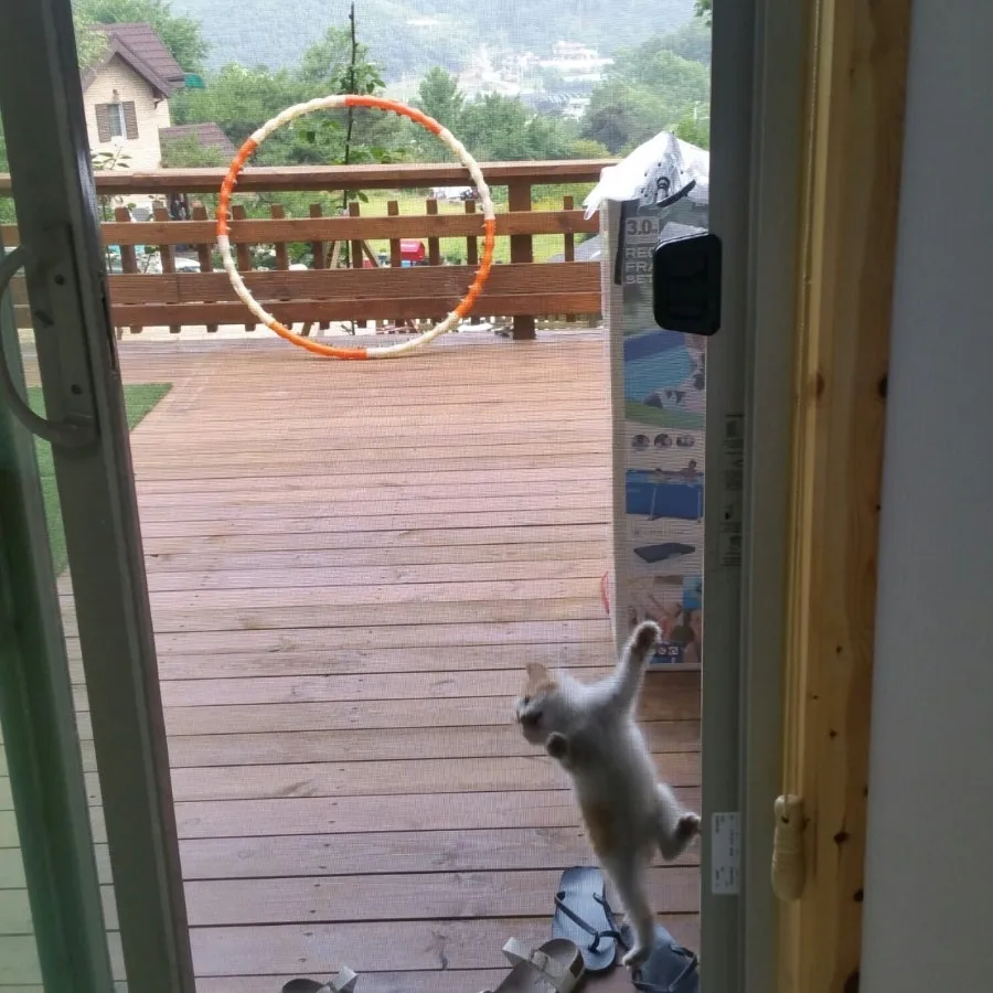 자유롭게 밖을 나다닐 때, 나가고 싶다고 표현을 하면 문을 열어줬다. 문 앞에서 진을 치고 엄마나, 아빠를 빤히 쳐다보거나, 문틀을 박박 긁고 얼굴을 쳐다보면 된다.