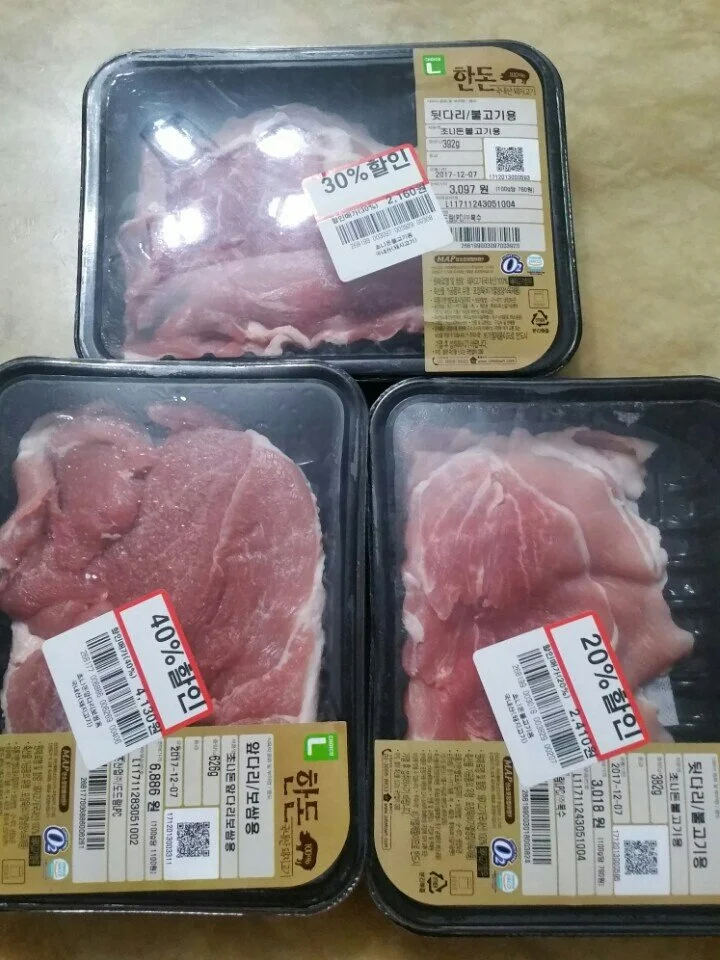 저녁, 퇴근길엔 엄마가 마트에 들러 고기를 사 왔다. 유통기한이 임박한 고기를 세일하면 사 와서 삶아 먹였다.