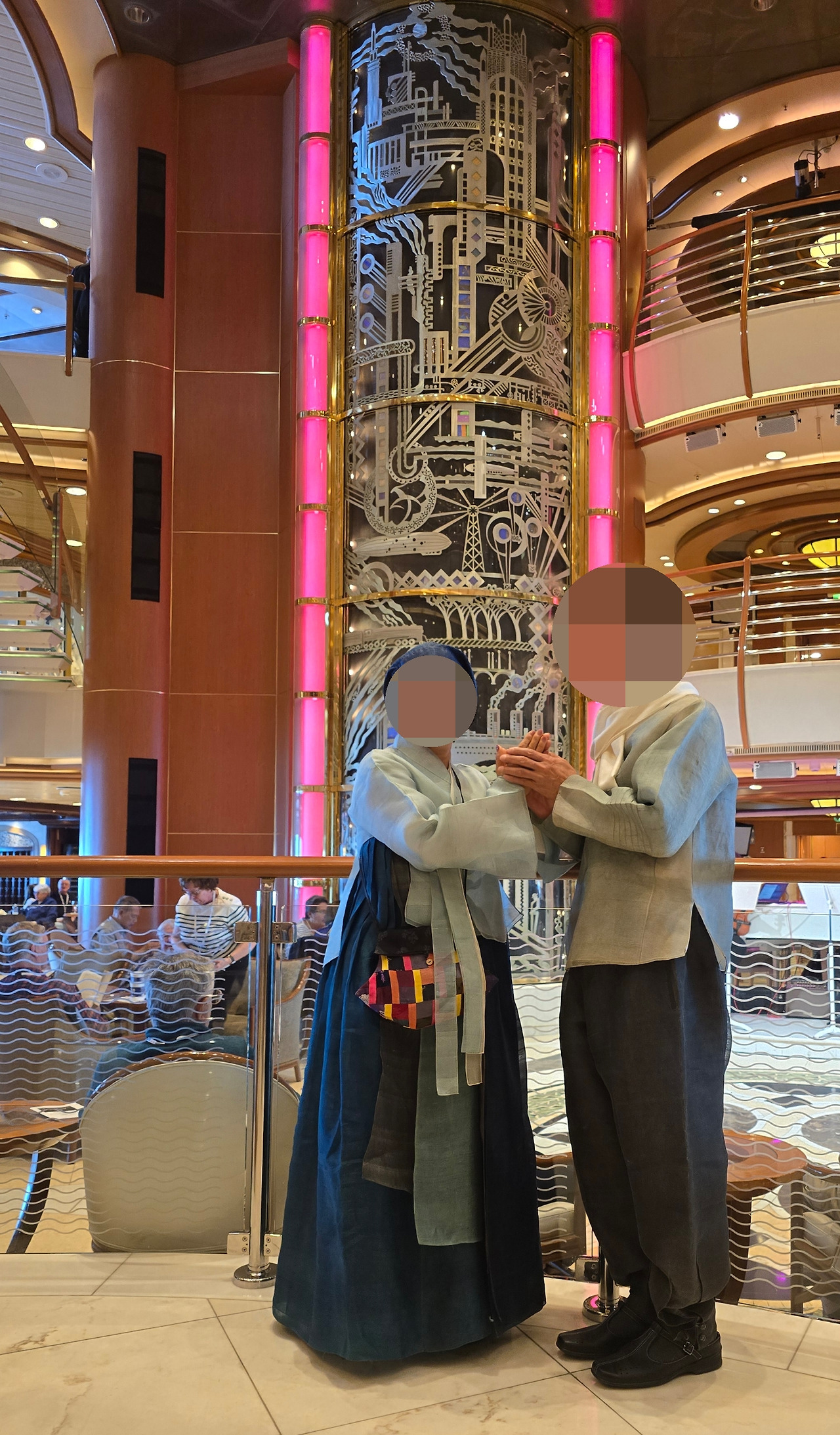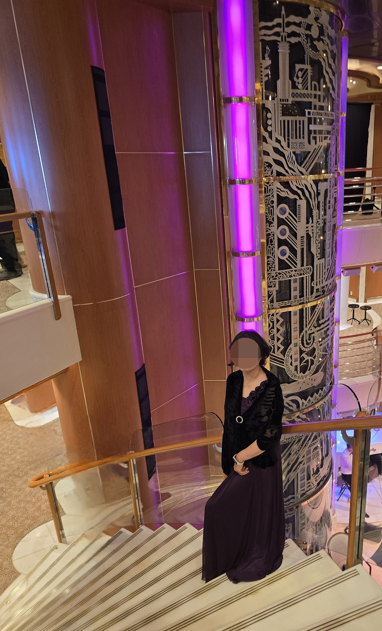 물론 드레스도 멋지다. 긴 크루즈 여행에서 바다에서만 있는 경우 이런 드레스코드로 멋을 부리고 사진을 찍기도 레스토랑에서 식사를 하기도 한다.