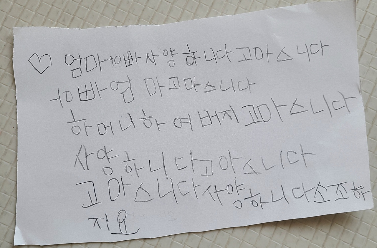 가장 먼저 글로 적어낸 마음도 '엄마'.