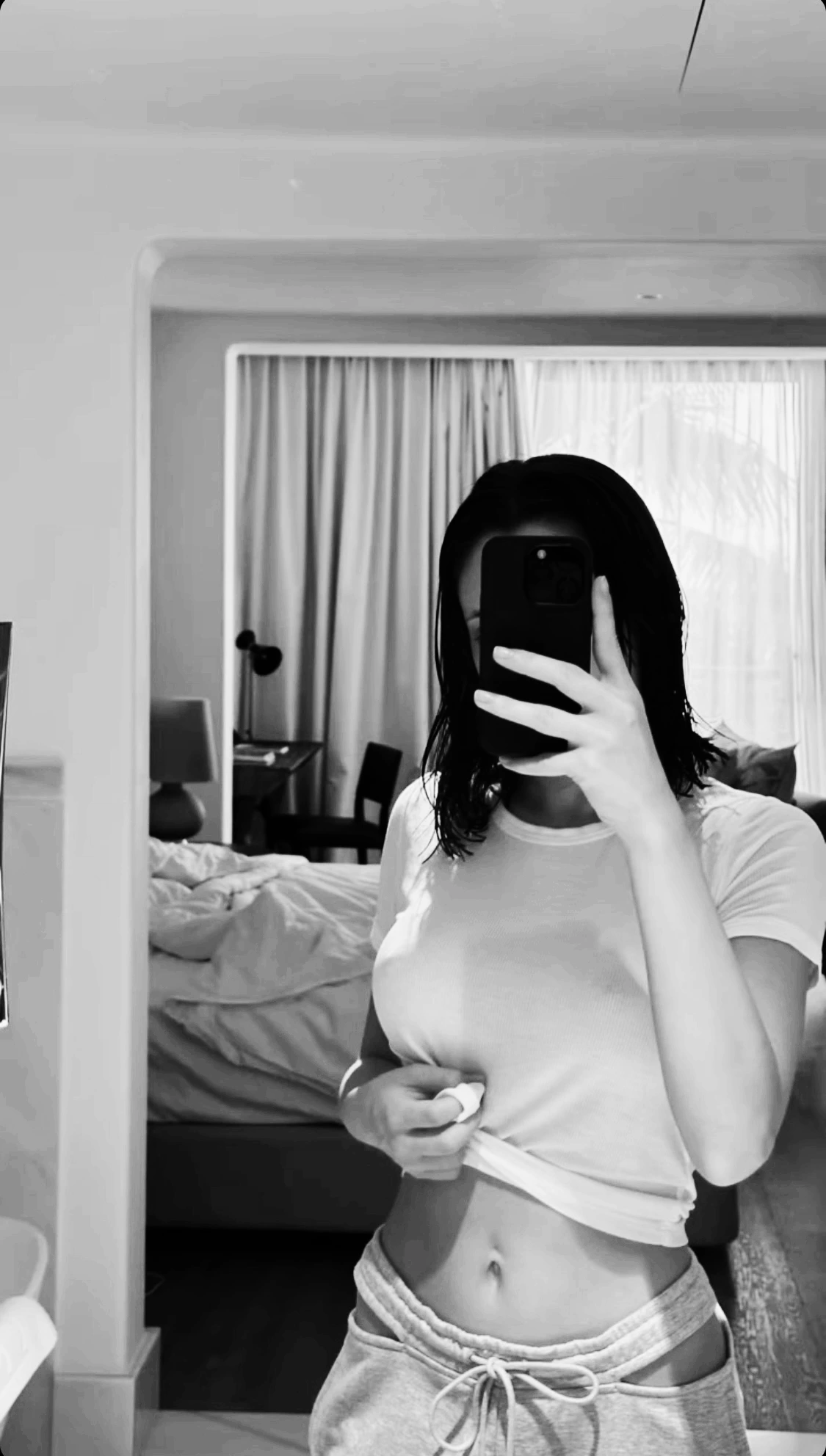 다니엘라는 자신의 몸을 확인한 다음 왼손으로 휴대폰을 꺼내 들었다. 그녀는 거울을 바라보고 휴대폰으로 자신의 얼굴을 가렸다. 그녀는 오른손으로 들어 올린 셔츠를 꼭 쥐고 잡아당겨 몸을 깨끗하게 드러냈으며, 배와 함께 문신이 보이는 것을 확인했다. 다니엘라는 카메라 앱을 실행해 초점을 맞추었다. 카메라 화면 위로 두 눈으로 보는 것 같은 선명한 이미지가 나타났다. 다니엘라는 촬영 버튼을 눌렀고, '찰칵' 소리와 함께 사진 한 장이 찍혔다. 다니엘라는 오른손으로 셔츠를 다시 정리한 다음 휴대폰을 확인했다. 그녀의 모습은 사진 속에 선명하게 담겨 있었다. 그녀의 허리부터 시작해 가려진 얼굴까지가 모두 찍혔으며, 그녀는 결과물에 만족했다. 하지만 이 사진은 다니엘라 자신이 소장하기 위함이 아니었다. 남에게 전송해야 하는 사진이었다. 다니엘라는 편집 기능을 활용해 사진을 작게 잘라냈다. 오직 휴대폰에 가려진 그녀의 얼굴과 뒷배경만을 남긴 것이었다. 그리고 다니엘라는 휴대폰의 연락처로 들어가 남자친구의 번호를 찾았다. 그 번호를 꾹 누른 다음, 자신의 얼굴이 담긴 사진을 첨부하고 짧은 문자를 작성했다.