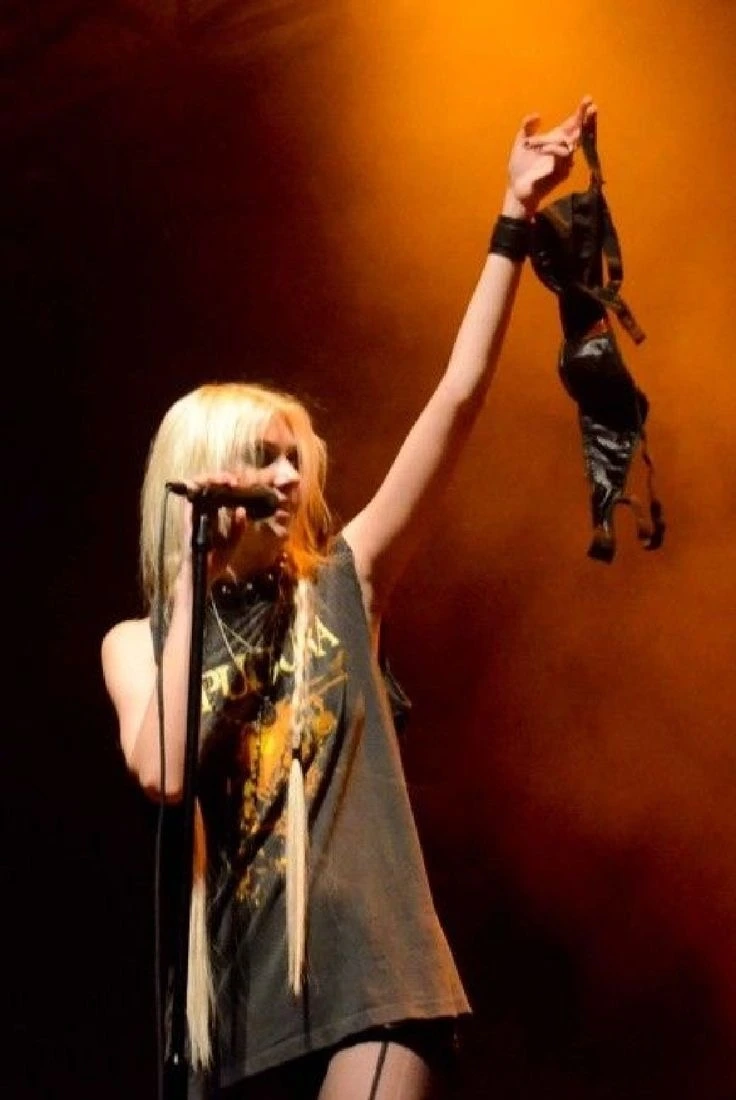곧 다시 손을 옷 아래로 뺀 그녀는, 이번에는 어깨 쪽으로 손을 집어넣었다. 테일러가 손을 빼자 검은색 끈이 당겨 나왔고, 관객들은 하나가 되어 커다란 환호성을 질렀다. 테일러가 반대쪽에서도 끈을 빼내자 환호는 거욱 커졌다. 마침내 테일러는 옷 속으로 손을 넣어서 자신이 입고 있던 검은색 브래지어를 벗어서 들어 올렸다. 테일러의 노출에 관객들은 그 이전보다 더 격한 환호를 보냈으며, 테일러는 그런 관객들을 자극이라도 하듯 몸을 요염하게 흔들면서 손에 든 브래지어를 휘두르기 시작했다.