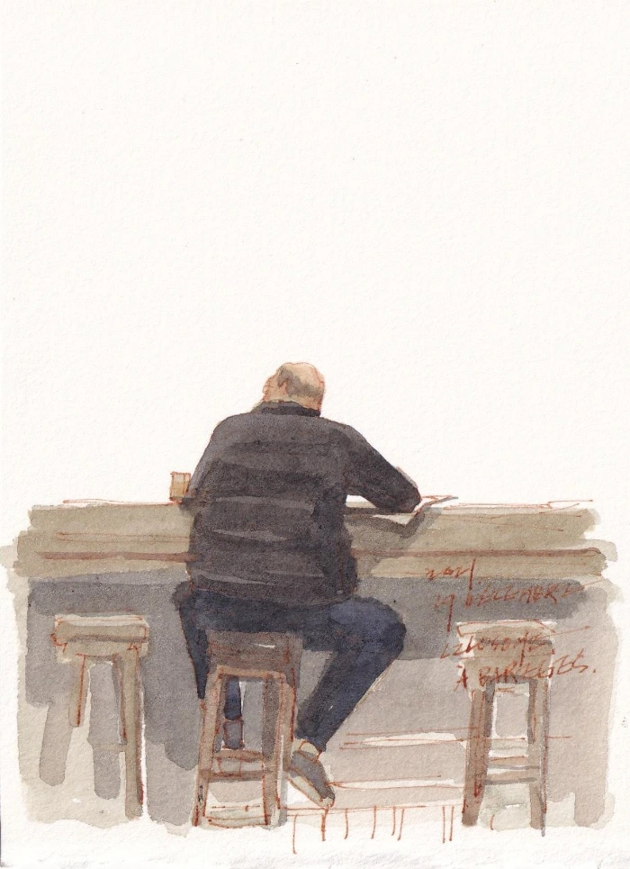 스키를 타다가 다리가 부러진 그때 그 초등학생 막내 딸아이가 올해 결혼을 했다는 이야기, 2년 후에 이곳을 떠나 따뜻한 곳에서 은퇴의 삶을 살 거라는 이야기... 더 이상 누군가를 돌볼 일 없는 중년과 밤 개장을 준비하며 잔을 닦는 나이 든 바텐더가 바를 사이에 두고 오후의 느릿한 시간이 지나고 있었다.