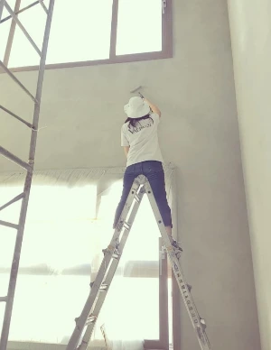 높은 사다리에 올라갈 때는 아랫배와 등근육을 각성시키며 작은 발이 헛디디거나 다리에 힘이 풀리는 일이 없도록 정신통일을 한다. 하나 둘 셋... 페인트가 가득 담긴 통과 붓, 롤러를 놓치지 않기 위해 두손 두발 허리 배 눈... 모든 육체의 각 기관들을 살펴보고 알아차리며 올라가야 한다.