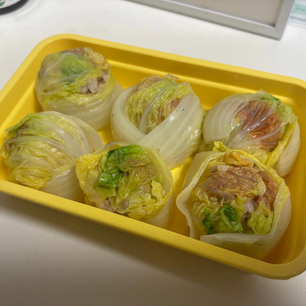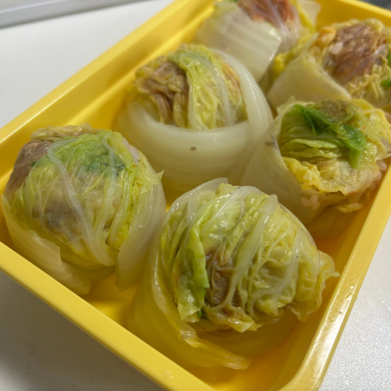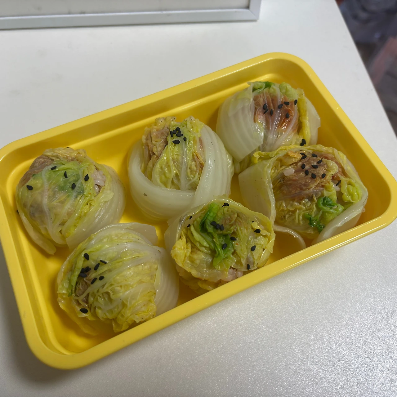 알배추는 살짝만 데쳐주고 그 위에 양념된 밥을 올려 하나씩 동그랗게 말아주었다.