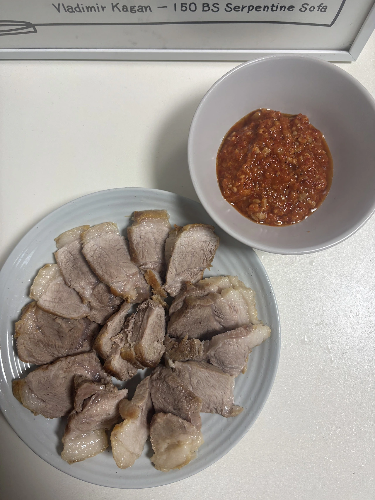 개인적으로 수육은 따뜻할 때 바로 썰어먹어야 한다는 주의다.