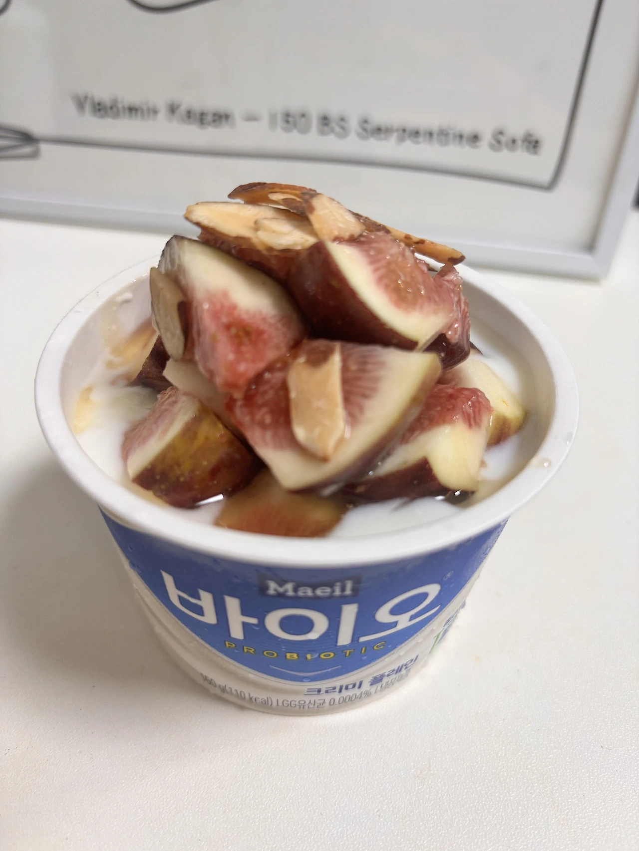 넘치게 담았던 무화과와 요구르트가 순식간에 사라져 갔다.