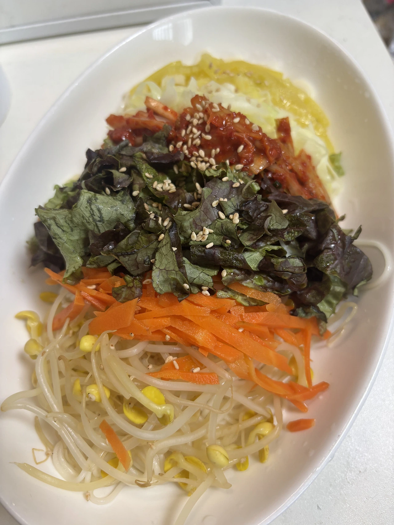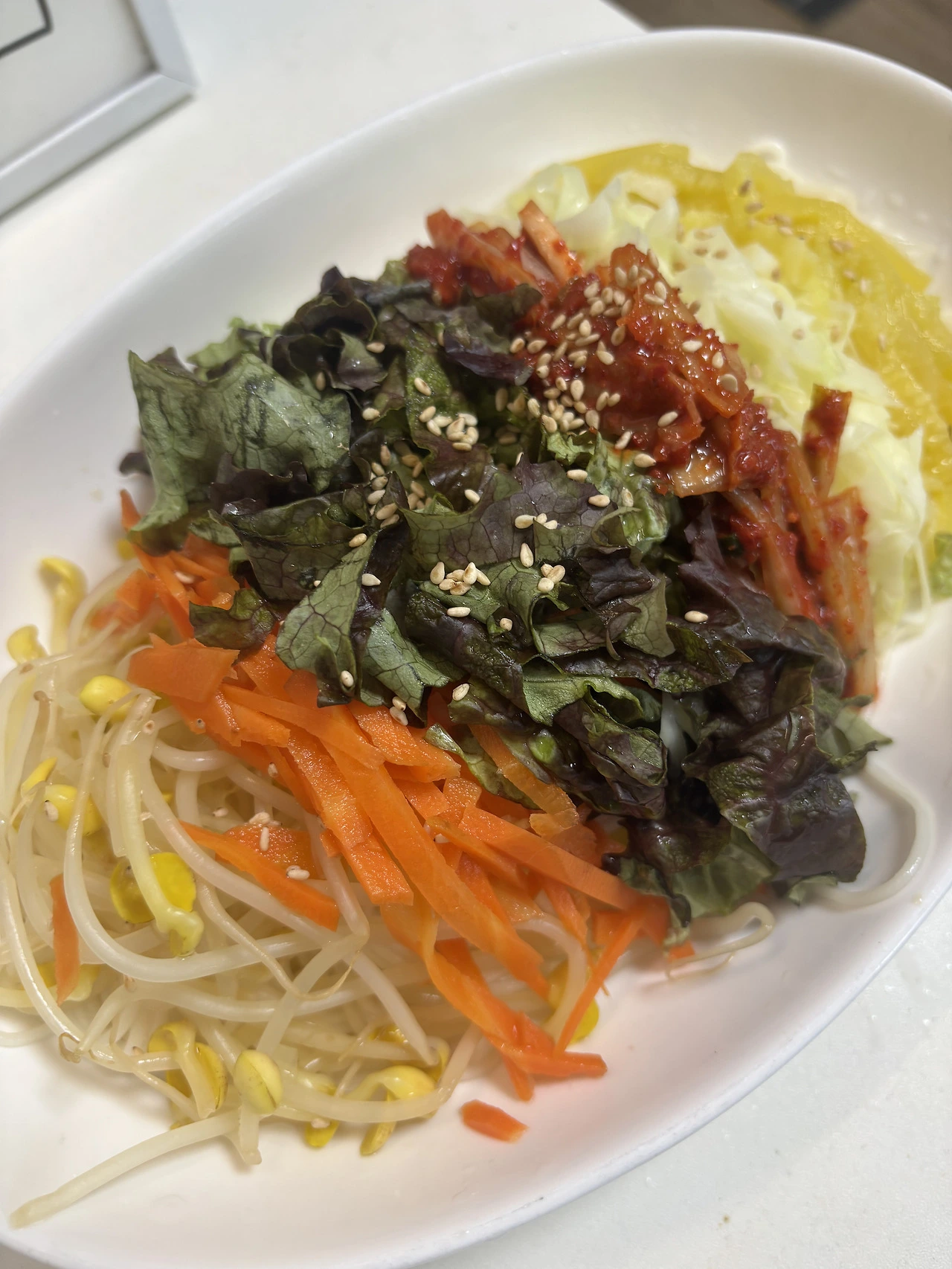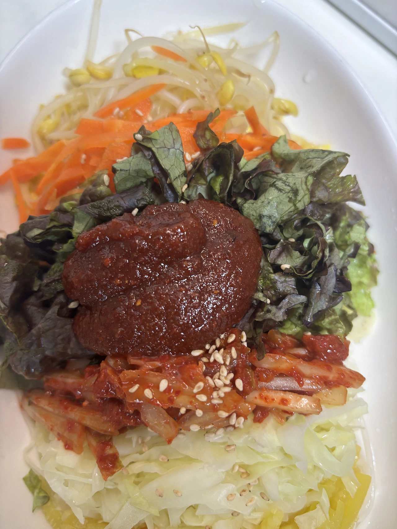 양배추, 애호박, 당근, 상추, 콩나물 딱 비비기 좋은 구성이었다.