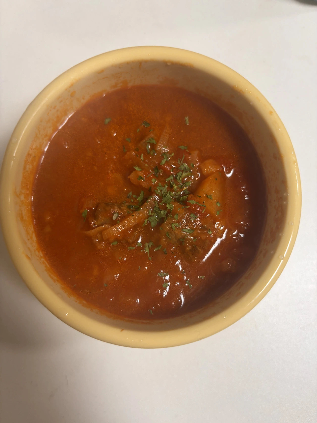 한입 떠먹어보면 진한 소고기 베이스의 육수맛이 먼저 올라온다. 그리고 뒤 따라오는 파프리카가루의 붉은 맛 푹 끓인 채소들을 듬뿍듬뿍 떠먹다 보면