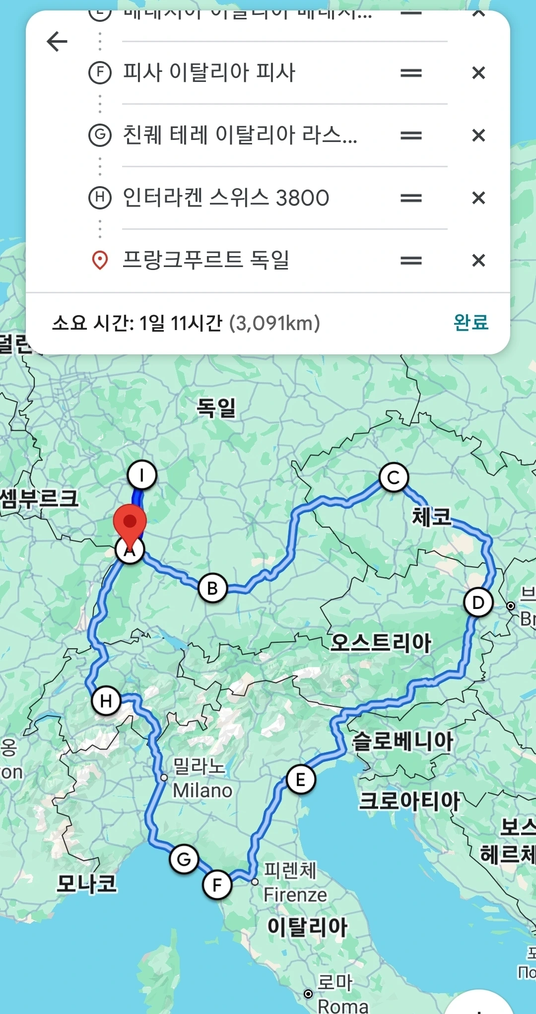 자그레브는 왜자꾸 넣냐는 항의와 에펠탑은 왜 빼냐는 항의가 발생했다. 아들에게 에펠탑 대신 피사의 사탑을 제안해보았고 아들은 흔쾌히 그것도 재밋겠다고 했다. 후닥닥 경로를 수정해보았다.