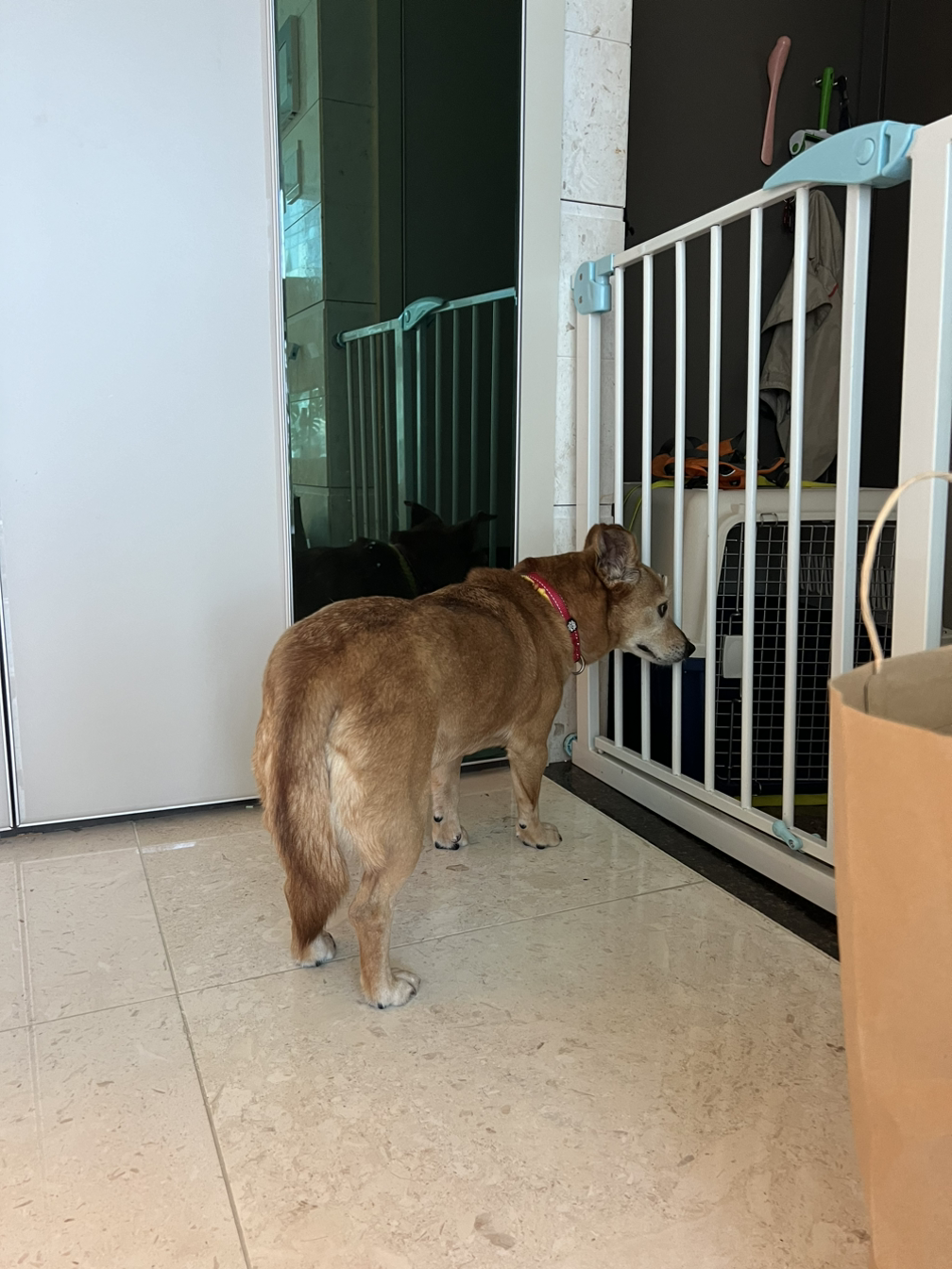 낯선 공간에 데리고 가면 나만 졸졸 쫓아다니기도 한다.
