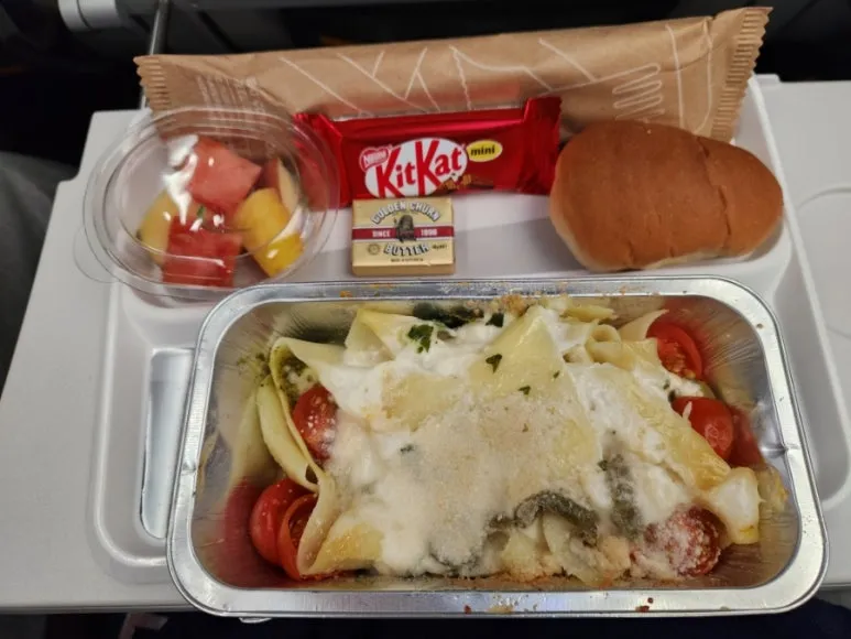 꾸역꾸역 어찌어찌 시간을 보내고 먹은 두 번째 기내식, 파스타였는데 소스를 비벼 먹을 만큼의 공간은 없어서 겨우 떠먹었다.
