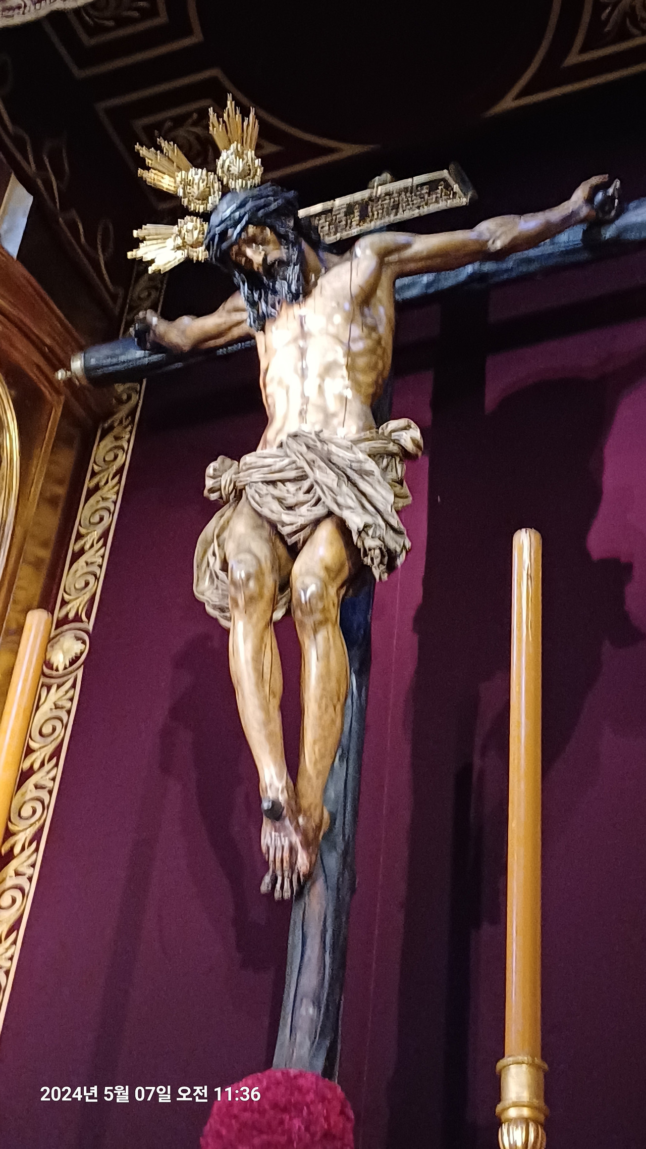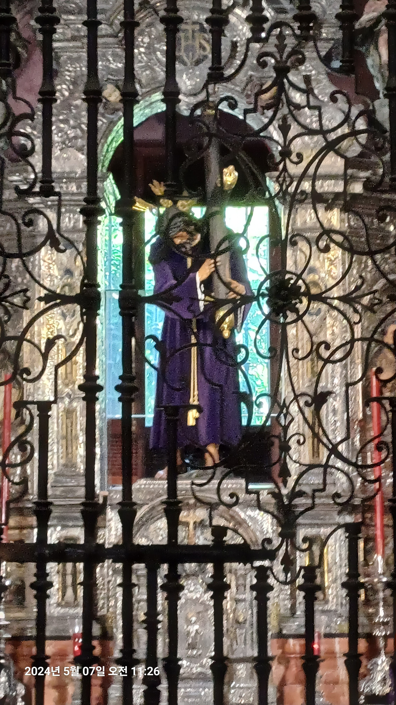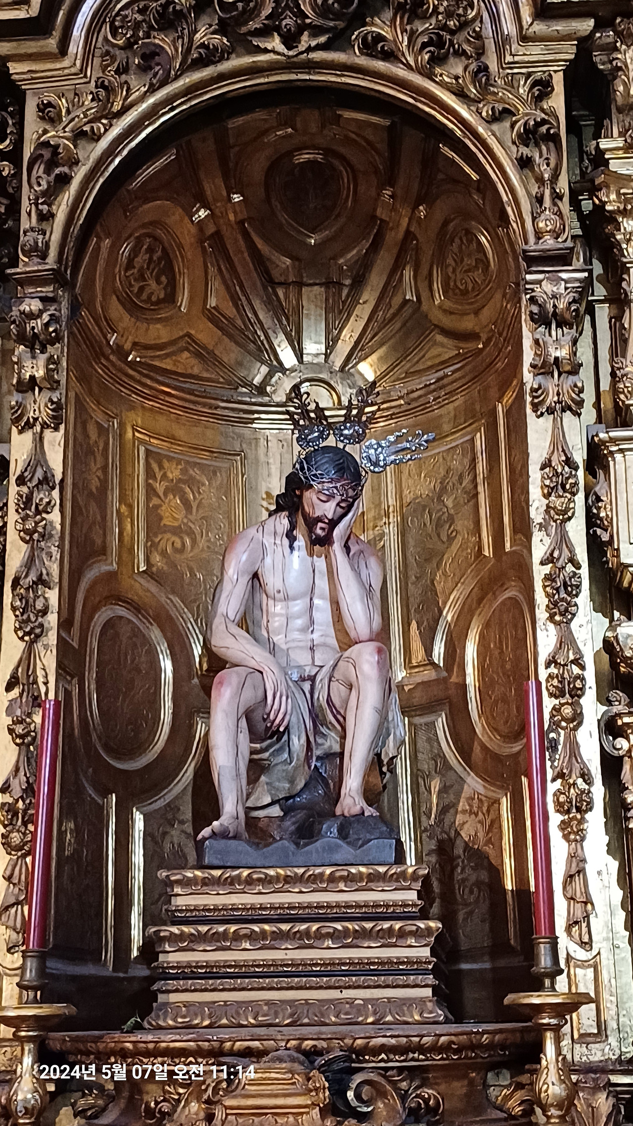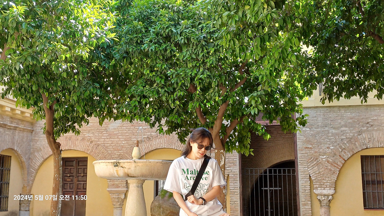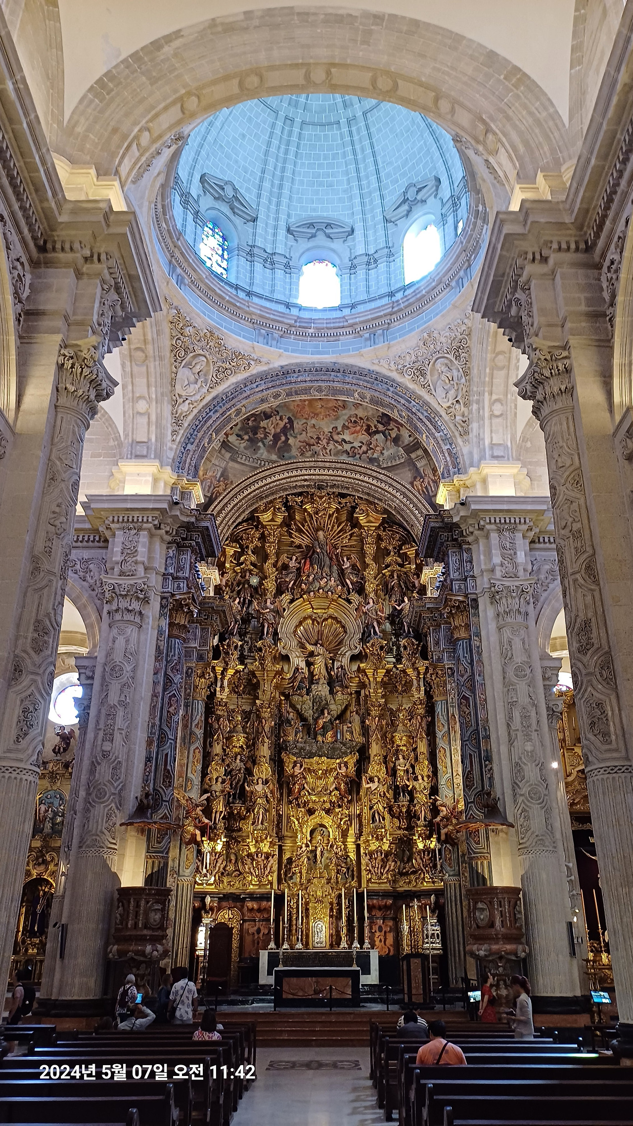 스테인드글라스를 통해 들어오는 빛의 향연이라고 할까? 은은하고 따뜻한 포근함까지 자아내고 있었다. 세비야 대성당에서는 웅장함이 그러나 약간의 박물관 같은 이질감을 느꼈다면, 살바도르 성당은 예수님 품 안에 들어가 있는 듯한 평온함을 느낄 수 있었다. 성당 안의 오렌지 정원 역시 포근했다. 오렌지 나무가 정원수라니, 이때는 몰랐다. 세비야의 가로수도 오렌지 나무였다. 나무에서 떨어진 오렌지가 발에 치이며 굴러다녔다.