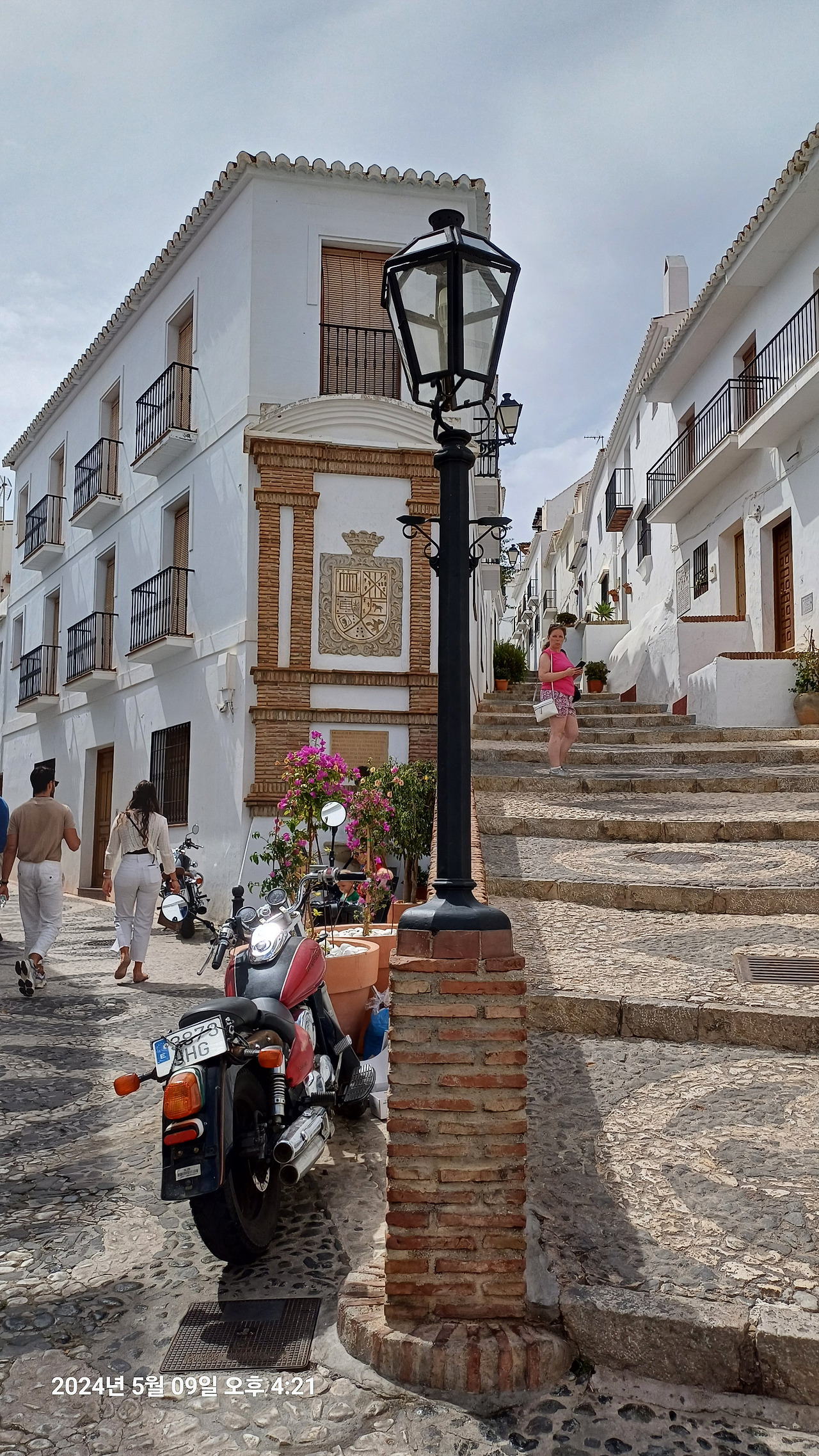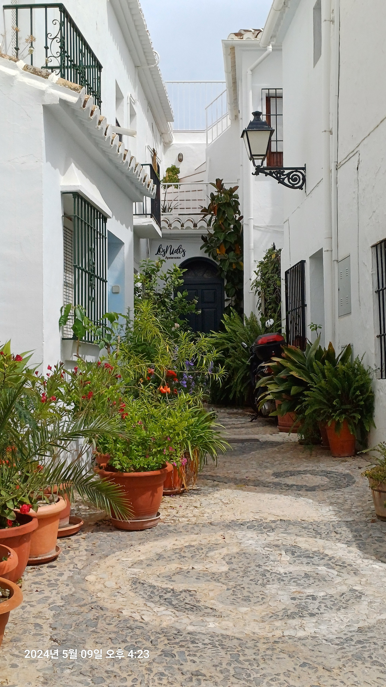 무어인(이베리아 반도와 북아프리카에 살았던 이슬람계 사람)은 7백 년 동안 이곳을 차지하고 살다가 기독교 왕조에 정복당해 쫓겨났다. 왕족은 북아프리카로 갔지만, 조상 대대로 살아온 땅을 떠나서 갈 곳이 없었던 평범한 사람들은 산에 바위굴을 파고 들어가 숨어 살았다. 그래서 동화마을처럼 보이는 프리힐리아나 언덕의 골목에는 침략과 전쟁의 슬픈 이야기가 담겨있다. 프리힐리아는 해발 318m 산맥에 있는 인구 3천여 명의 작은 마을이다. 가 본 적은 없지만 광고 속에서 본 그리스의 산토리니를 연상케 하는 하얀 집들로 이루어져 관광객들이 많이 찾고 있다. 언덕에는 낙서 하나 없는 하얀 벽과 바다처럼 파란 문에는 문패처럼 개성이 담긴 타일이 걸려 있었다. 창문에는 벌레가 싫어하는 제라늄꽃이 붉게 피었다. 하얀색의 비슷한 집들은 그나마 화분으로, 타일로 각기 다른 개성을 뽐내고 있었다. 골목을 걷다 보면 드문드문 벽에 타일로 정복자가 원주민을 어떻게 탄압했는지 글과 그림으로 보여준다. 알지 못하는 스페인어로 쓰였지만, 여자와 아이들이 줄줄이 묶여서 끌려가는 그림, 죽임을 당하는 그림, 절벽에서 떨어지는 그림을 보면 당시 무어인의 비참한 상황을 이해할 수 있다. 지금은 서로 같이 살아가는 동네가 되었다. 골목을 걷다 보면 교회도 있고, 모스크도 있는 기독교와 이슬람이 공존하는 동네가 되었다. 슬픈 역사는 슬픈 하얀색의 마을로 언덕 위에 아름답게 서있었다. 한 사람 겨우 지나갈 만한 좁은 골목으로 올라가는 계단에 앉아 사진을 찍었다. 그리고 열려있는 창문으로 집안을 살짝 들여다보았다. 집 안에 있던 아주머니와 눈이 마주치고, 나는 쑥스럽게 인사를 했다.