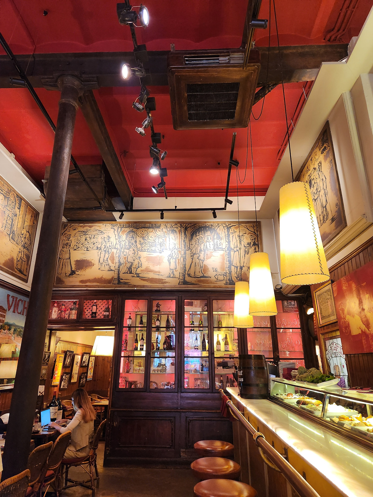 그렇게 들어선 식당(Casa Alfonso)은 입구부터 하몽이 쭉 걸려있었다. 뭔가 스페인 정통 분위기가 풀풀 나는 곳이었다. 기대에 부푼 우리는 12시에 딱 맞춰 도착해 대기 없이 들어갔다. 웨이터가 친절하게 입구 근처 자리로 안내했다. 쇼핑하느라 손이 지저분해 화장실에 다녀온 후 식당 내부를 둘러봤다. 식당 안쪽은 시간여행을 한듯 영화 세트장처럼 고풍스럽고 멋졌다. 와~감탄하다 생각해보니 뭔가 이상했다. 안쪽 테이블은 백인들이 앉아있고, 입구 쪽 테이블엔 동양인만 앉아 있는 거지? 설마, 인종차별인가?