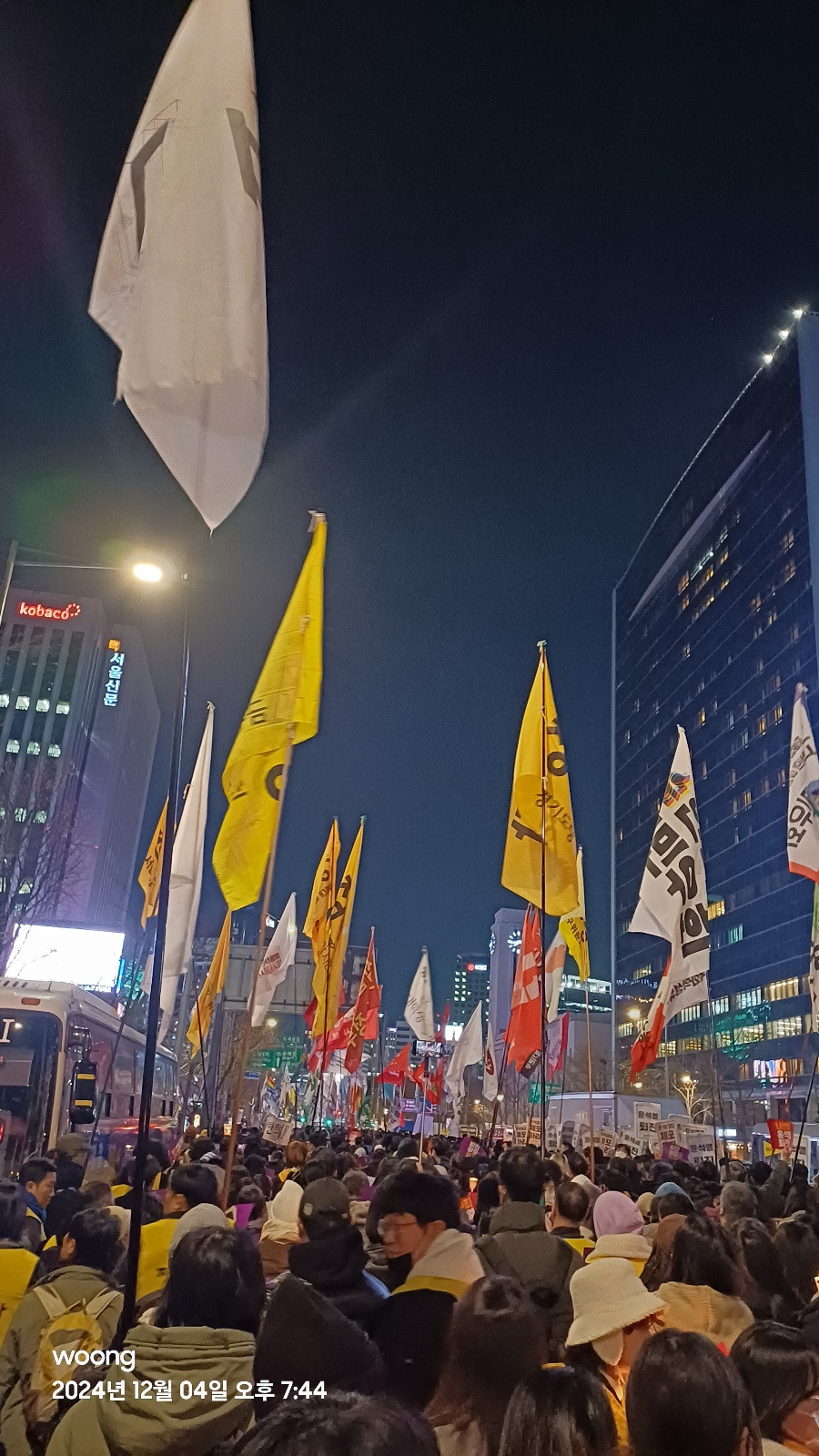 한때 박근혜 대통령 탄핵 집회에 나섰던 기억이 떠올랐다. 세월호 참사로 가만있지 않겠다고 다짐하며 거리로 나갔던 날들. 부끄럽지 않은 어른이 되고자 외쳤던 민주주의. 하지만 촛불 정권이 들어선 뒤 깨달았다. 달라진 건 아무것도 없었다. 과반 의석을 가진 정권도, 아이돌 뺨치는 지지율의 대통령도 재벌과 기득권의 벽을 넘지 못했고, 서민과 소수자는 여전히 외면받았다. 그래서 윤석열 대통령 탄핵 집회에도 마음이 가지 않았다. 탄핵을 외치고 또 다른 무능을 맞이할 생각에 기운이 빠졌으니까. 그런데, 계엄령? 이건 좀 다르다. 밤새 텔레비전을 지켜보며 계엄군이 국회로 들이닥치고, 그걸 무효화했다가 다시 해제되는 한바탕 소동을 지켜봤다. 환율이 급등하고, 주식은 폭락하고, 코인은 추락했다. 이게 도대체 뭔가?
