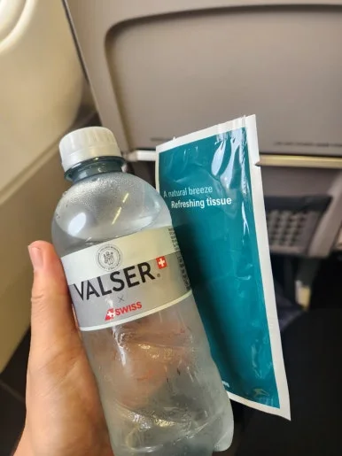 주위 둘러보며 앉아있는데 물이랑 물티슈 줬다