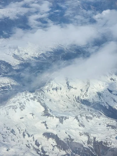 스위스로 가는 길에 보이는 만년설, 뭔가 스위스로 여행 가는 기분이었다
