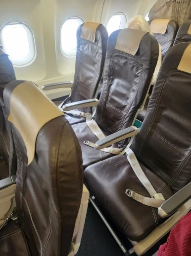 스위스항공 A321 비즈니스는 3-3배열로 가운데 자리를 비우고 착석한다