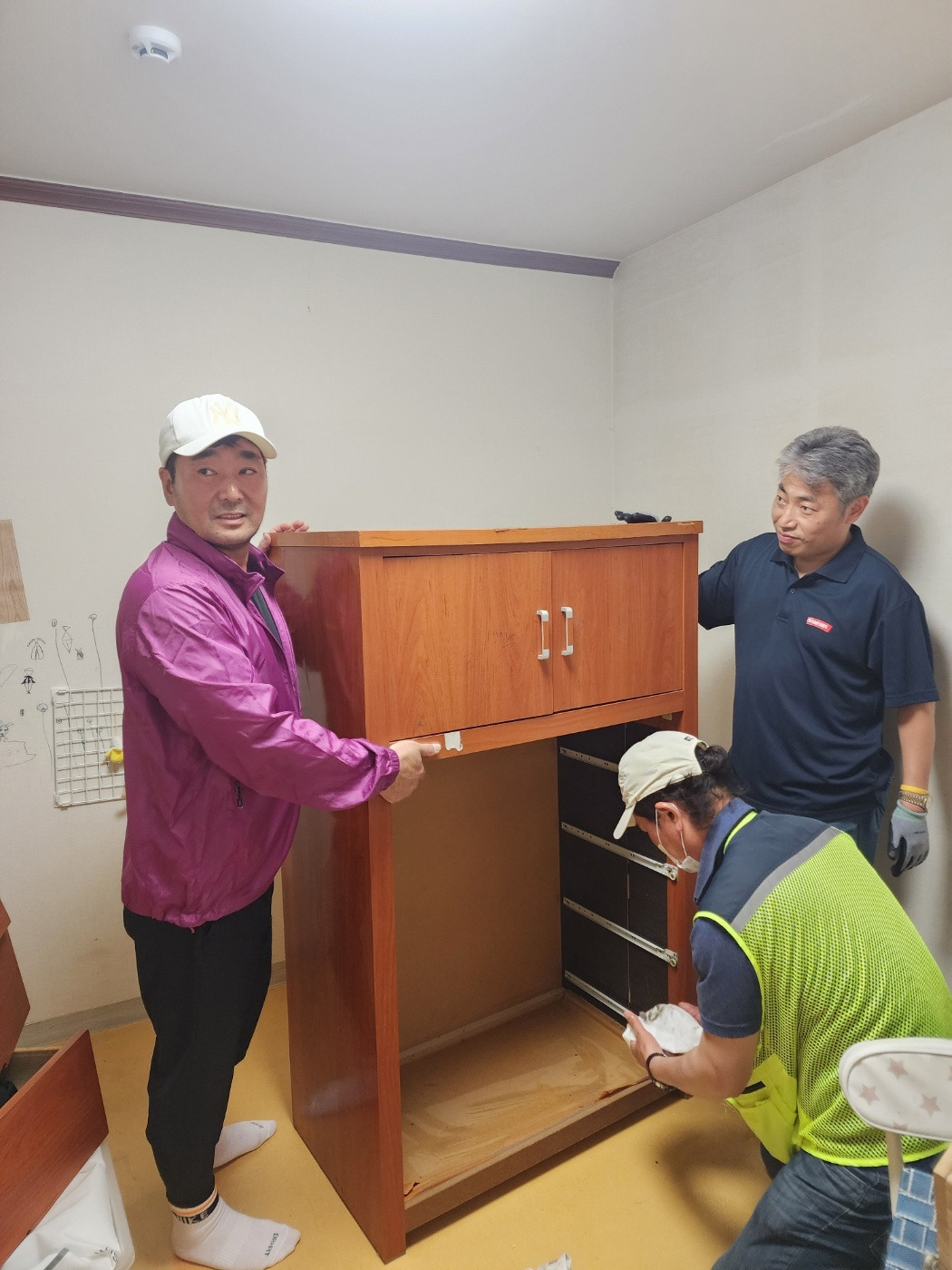 도배, 장판은 뜻을 함께하는 사장님이 비용을 최소화해 도와주고, 전기, 청소, 정리, 정돈은 회원들이 직접 나섭니다. 상황에 따라 가전과 가구를 새로 들여놓기도 합니다.