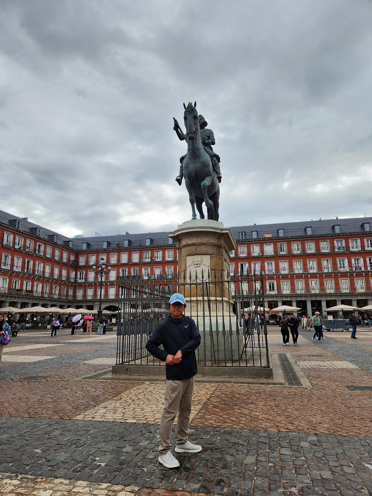 아침에 다녀온 솔광장은 사람들로 인산인해였다. 산딸기를 먹는 곰 동상 앞에는 사진을 찍으려는 사람들이 길게 줄을 섰다. 키가 작은 딸은 까치발을 들고서야 간신히 발뒤꿈치를 만졌다. 나는 곰의 발뒤꿈치를 만지는 딸의 까치발만 집중해서 사진을 찍었다. 바리스타의 복수였다. 오 분정도 걸어가면 나오는 마요르 광장은 솔 광장과 가까이 있었다. 마요르 광장 입구인 아치에 들어서기 전까지, 광장이 이렇게 멋이 있는지 예상할 수 없었다. 먼저 지나온 솔광장을 염두에 뒀기 때문이었을까? 마요르 광장은 ‘우와’하는 감탄사가 절로 나왔다. 가로 90미터 세로 110미터 그리고 광장을 둘러싼 건물까지 깜짝 놀랐다. 건물 외벽에는 그림까지 그려져 있었다. 광장 중앙에는 멋지게 말을 타고 있는 펠리페 3세의 동상이 있었다. 관광객과 현지인들이 함께 있는 광장은 음악 소리와 여러 나라의 말소리가 뒤섞여 정신없는 활기를 띠고 있었다. 입을 반쯤 벌리고 광장을 둘러봤다.