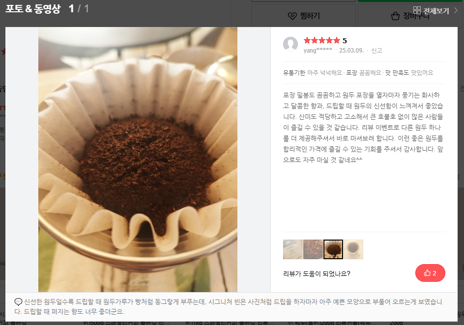 아무튼, 나는 하루에 한 분이라도 맛있는 커피를 드셨다는 고객들의 구매 리뷰를 보면서 빈식스커피가 성장하는 보람을 느끼고 싶다.
