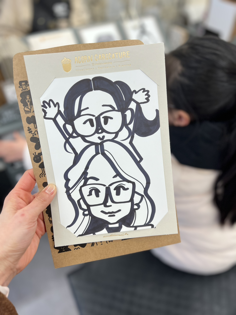 종묘의 서순라길 도토리 캐리커처, 엄마와 딸도 담아봤다. 나혼산 전현무가 MZ들의 핫플이라고 했는데 정말 아이는 우리 딸뿐. 들어갈 수 있는 곳이 없어 눈으로만 구경했다.