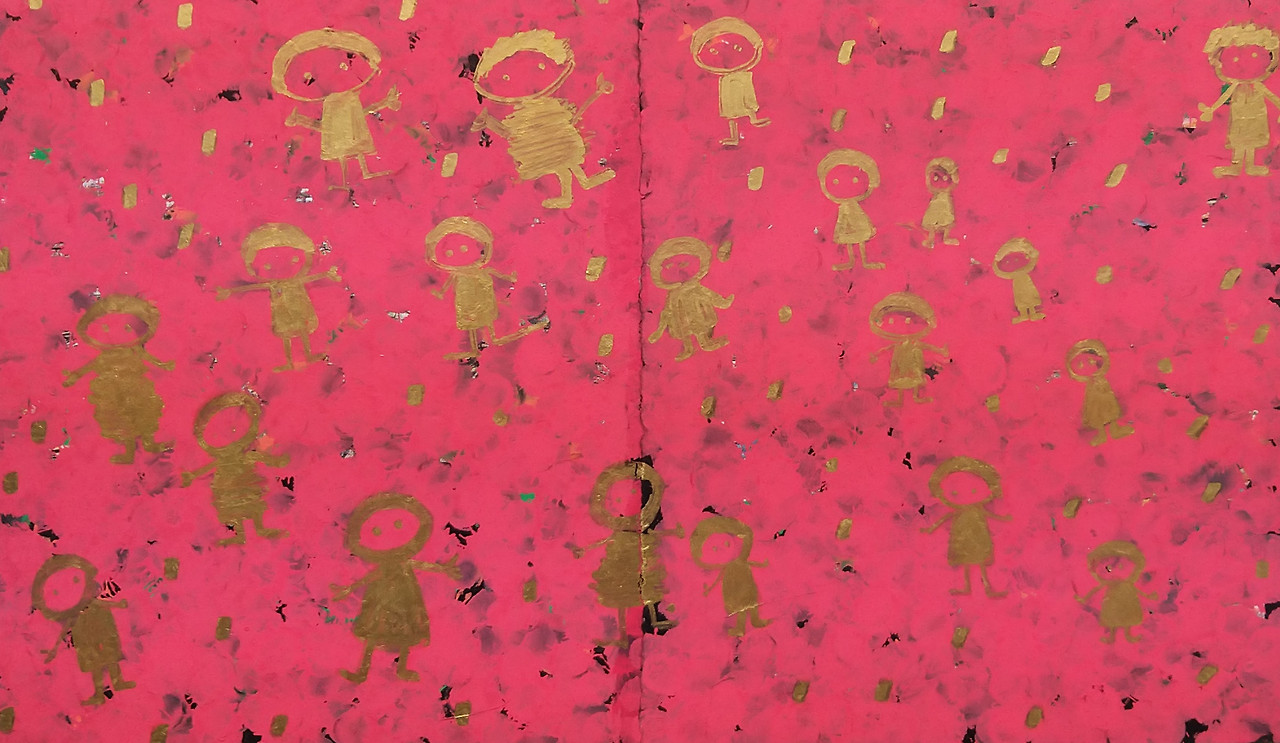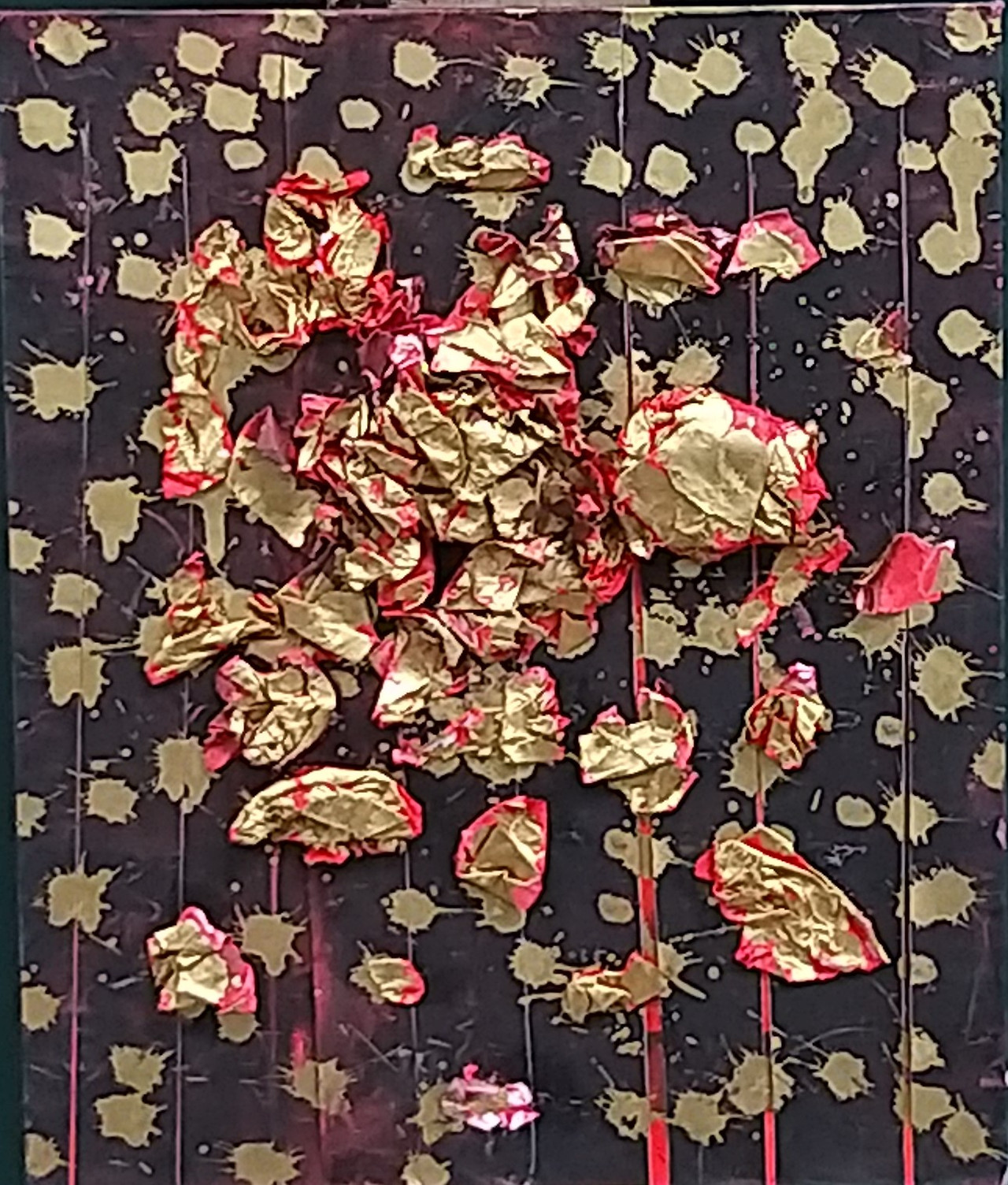 찢었던 종이들을 모두 모아 풀칠을 해서 종이에 다시 붙였다. 피 칠갑을 한 나의 작품이다. 이 작품 안에 나의 슬픔과 절망, 그리움이 모두 들어 있다.