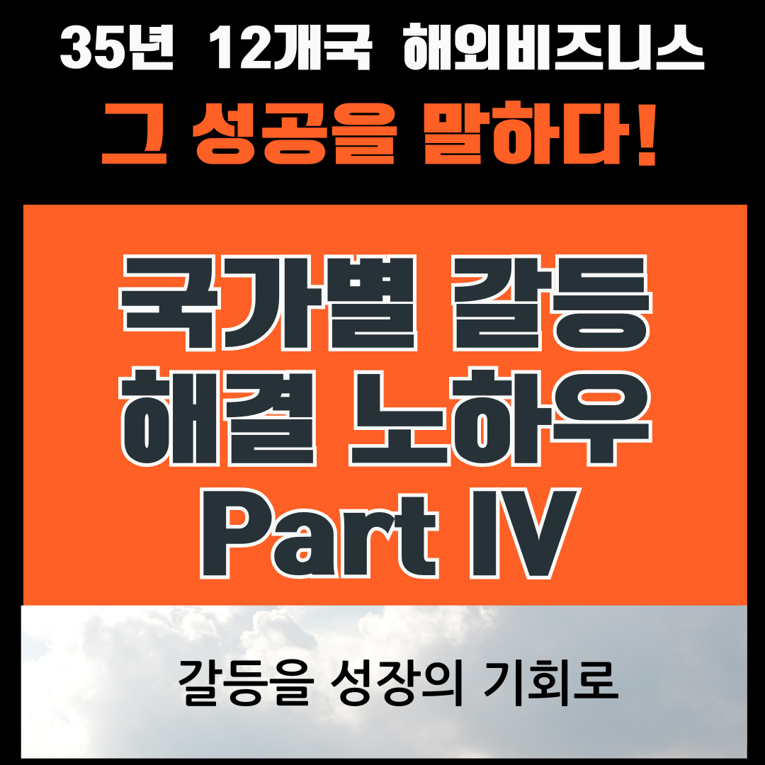 10개국에서 사업을 펼쳐 본 나로서는 각 나라의 문화나 습관을 배제하면 갈등을 풀어낼 수 없다는 숱한 경험을 했다. 전편에 이어, 조직 내의 개인 간의 갈등에 집중하여 각 나라의 독특한 해결 방식을 나열해보려 한다.