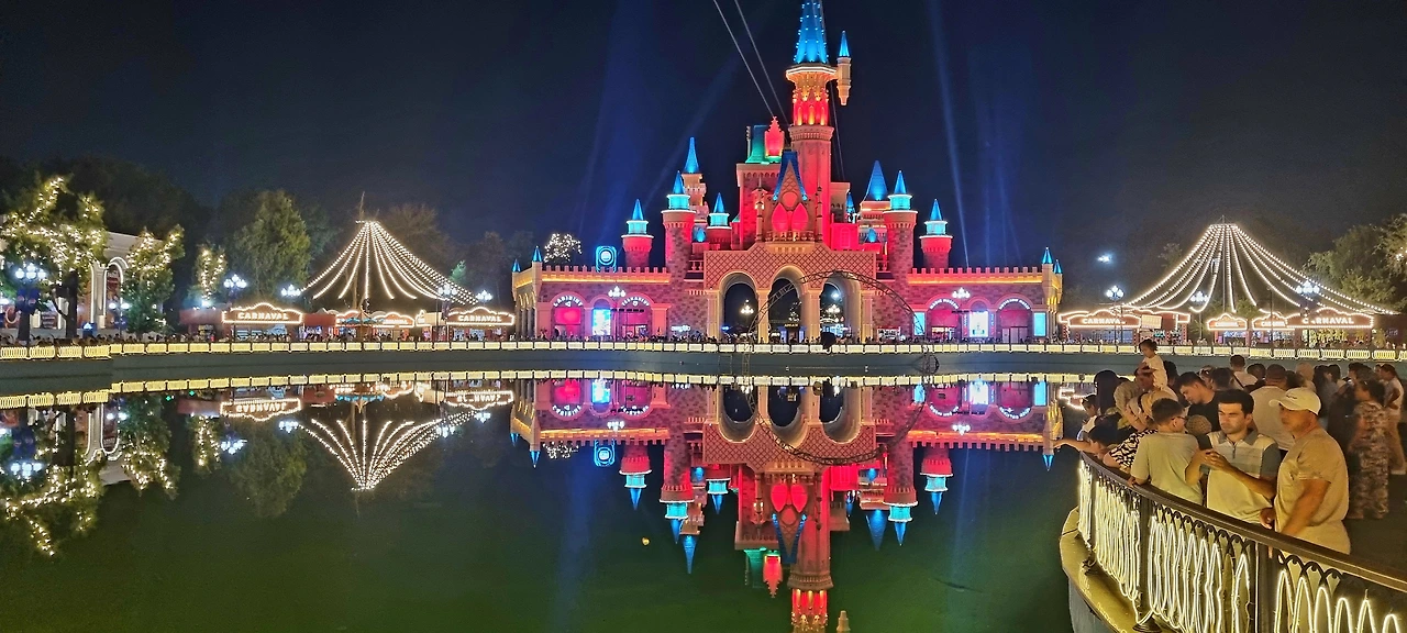 강의를 마치고 시내구경을 나서니 낮 최고기온이 42도다. 추억이고 관광이고 도무지 뭘 하고 싶은 생각이 들지 않게 만드는 혹서의 날씨다. 전통을 자랑하는 「우즈베키스탄호텔」앞에서 출발하는 2층 관광버스는 우리 일행 5명이 전부다. 중간 기착지에 내려 구경할 생각을 안하니 버스는 그냥 슬금슬금 도로 위만 달리다가 제자리로 돌아왔다. 그래도 어스름 저녁 무렵에 찾아간 Magic City는 별천지였다. 잠실 석촌호수의 롯데월드를 연상시키는 놀이공원이었다. 전세계의 랜드마크를 축약하여 만들어 놓고, 인공호수 건너편에 디즈니랜드의 고성을 만들어서 이를 배경으로 분수 물줄기가 음악과 조명에 맞춰 춤추는 환상적인 분위기를 연출했다. 우즈베키스탄의 새로운 중산층 가족들을 위한 엔터테인먼트다. 문득 국민들에게 경제발전의 미몽을 심어주기에는 이만한 프로젝트가 없겠구나 하는 생각이 든다.