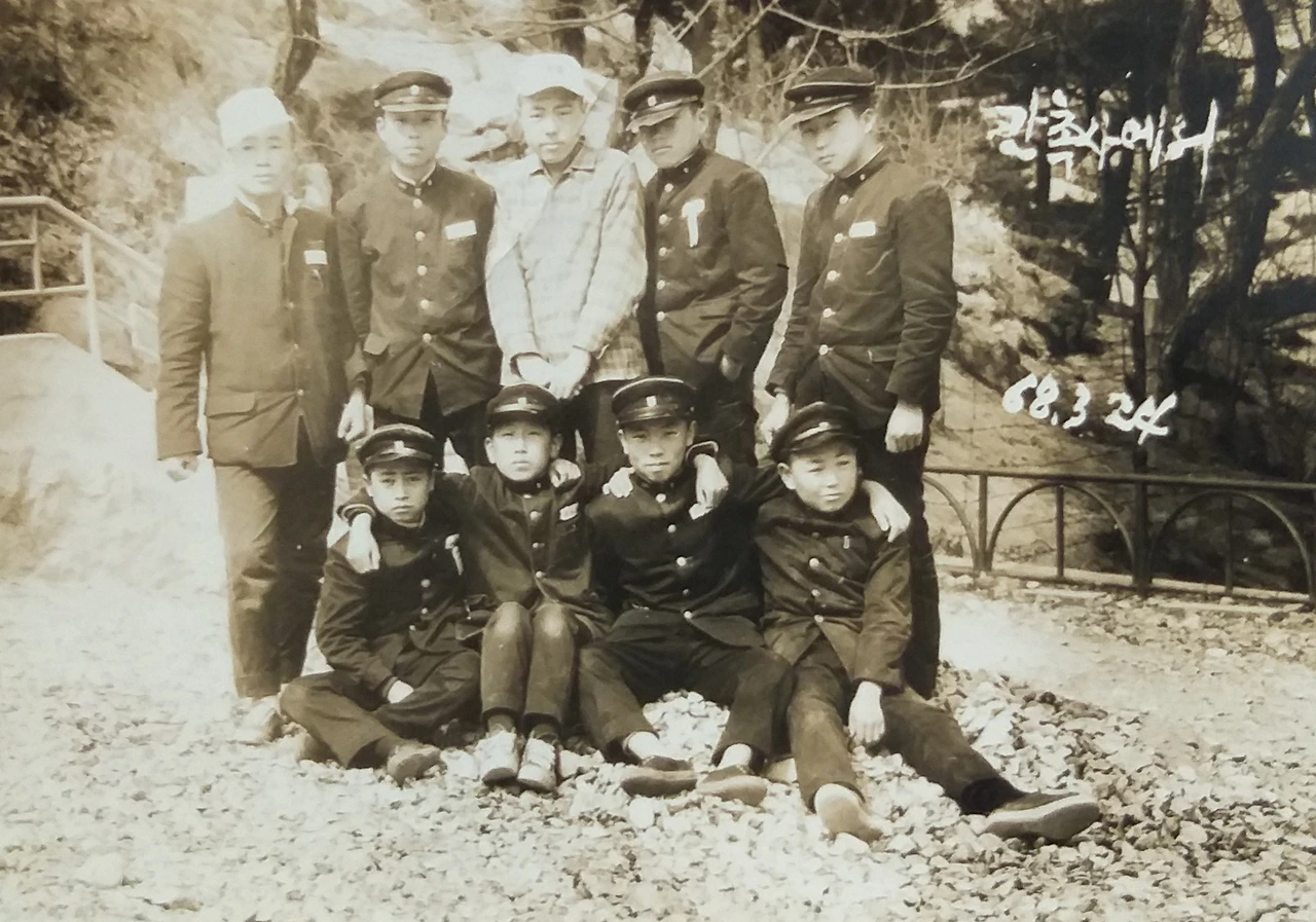 뒷줄 왼쪽에서 두번째, 정진영. 맨 오른쪽 이돈식. 앞줄 왼쪽에서 두번째가 필자