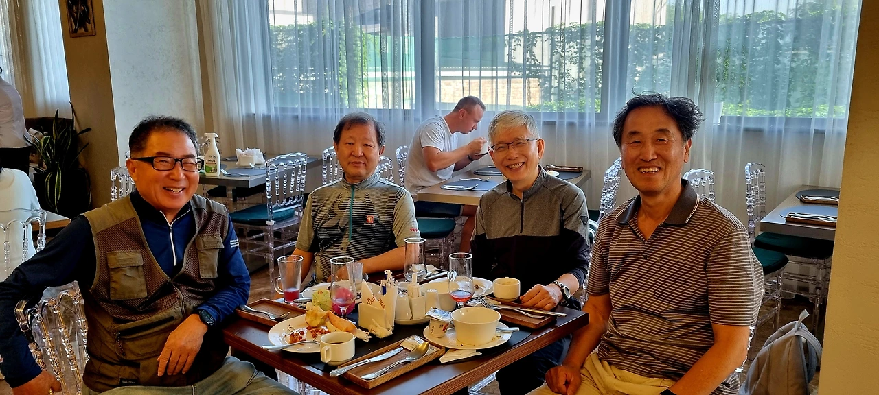 숱한 세월이 지나갔다. 그러나 우리 5명 모두 아직도 건강하고, 자식들 포함 주위에 폐 끼치지 않고 당당하게 살아가고 있다. 그리고 오늘 저 시골동네에서 정말 볼품없이 자라온 새까맣던 촌놈들이 비행기타고 천산산맥까지 날아와서 번듯한 호텔 식당에서 조찬을 함께할 예정이다. 이 어찌 흥분되지 않을 수 있단 말인가? 내 어찌 잠을 쉽게 이룰 수 있단 말인가?