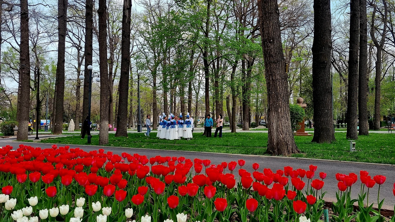흔히들 세계에서 가장 아름다운 길이라고 할 때 주저없이 꼽는 곳이 파리의 상젤리제(Champs-Élysées)다. 그러나 샹젤리제는 개선문과 콩코드 광장을 잇는 폭 70m, 길이 1.9km의 대로로 가로수 이외는 나무가 없는 넓은 찻길(당초에는 마차길)일 뿐이다. 넓은 길 대부분을 차에게 양보하고 보행자들은 정작 그 길은 쳐다보지도 않고, 양 옆 보도를 따라 늘어선 명품 상점들만 기웃거리며 걷는 욕망의 길이다. 그나마 에디 피아프(Édith Piaf, 1915-1963)의 로맨틱한 노래에서 인용되었기 망정이지, 그 노래들마저 없었다면 샹젤리제는 차량이 질주하는 그저 그런 길 중 하나에 불과했을지 모른다. 샹젤리제의 역사와 낭만은 그 길 위가 아니라, 그 길 너머에 있을 뿐이다. 그러나 에르킨딕은 그 길이 역사고, 낭만이다. 에르킨딕은 양 옆으로 2차선씩만 차도로 쓸 뿐, 도로 대부분이 숲으로 덮여있고, 그 사이로 보행자들의 산책로가 설치된 2.8km의 도심 숲길, 그리고 우거진 녹음 사이로 천산의 빙하 녹은 물이 졸졸졸 흐르는 멋진 가로공원이다.